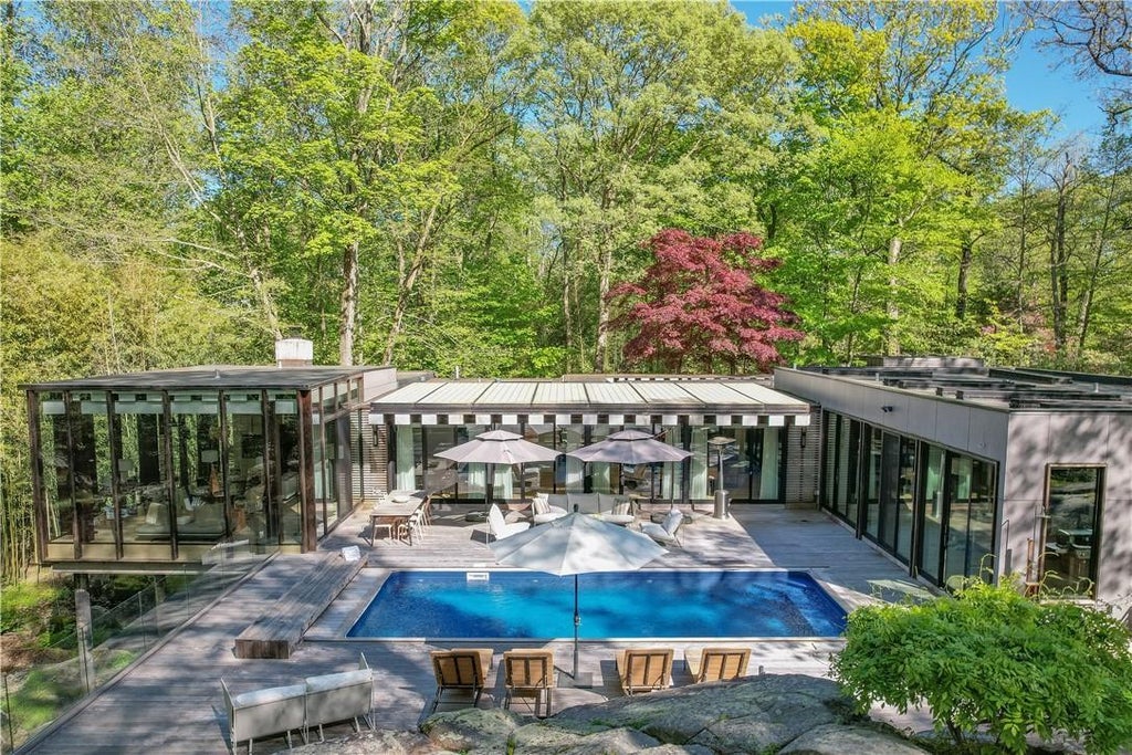 Introducing this stunning mid-century modern retreat, nestled in the serene woods in Scarsdale School District. Step into another world as you arrive at this magical home surrounded by trees and a picturesque creek, offering breathtaking views through its floor-to-ceiling windows. This architectural masterpiece embodies the essence of a vacation lifestyle everyday. The captivating living spaces with gorgeous architectural details wrap around a private deck and pool, making every day feel like a resort-style escape. The home boasts six bedrooms, all with custom outfitted closets, 4.5 baths and offers a seamless blend of modern luxury and timeless design throughout. This remarkable property offers a rare opportunity to enjoy a private, wooded oasis while being just moments away from the train and town. Avaiilable substantially furnished if desired.