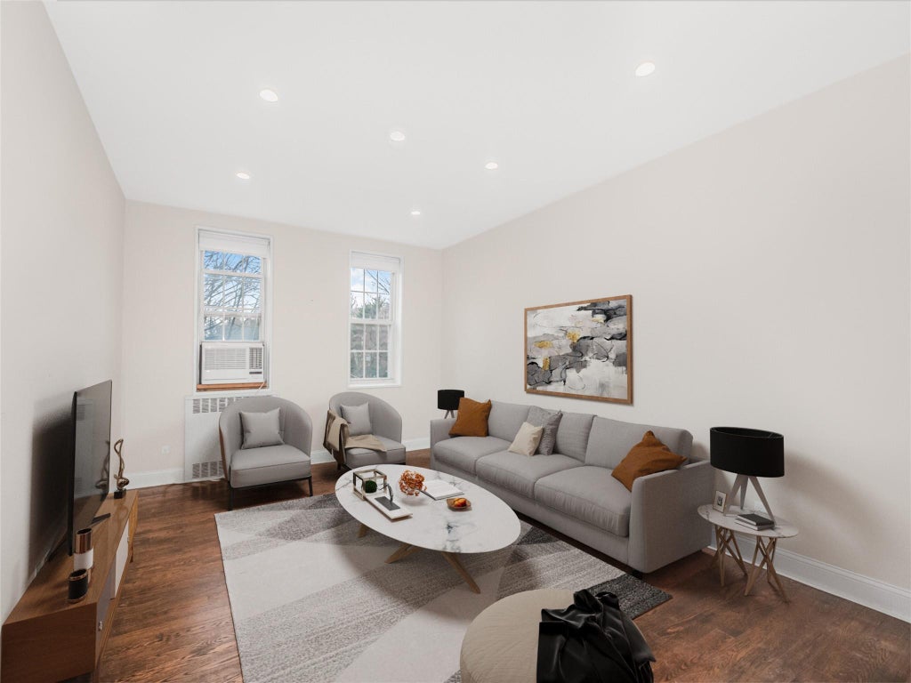 Step into this one-of-a-kind, meticulously renovated 3-bedroom, 2-bathroom masterpiece at Fleetwood Park. An inviting entry hall foyer with hardwood floors and sleek baseboards welcomes you home. Enjoy the chef's galley kitchen with window, fitted with white shaker cabinetry, quartzite counters with a chic backsplash, an oversized sink and stainless steel appliances. Bask in seasonal tree-top and lush green views from the spacious living room. The master suite is fit for royalty, with an expansive dressing area with custom built-in closets, and an en-suite bathroom featuring marble tiles, a window, shower enclosure, and custom marble top vanity. Make your way to the opposite wing, and there are two additional bedrooms and a beautifully renovated common bathroom with marble tiles and elegant finishes. Fleetwood Park amenities include a live-in super, common laundry and a private playground for residents. Close proximity to shopping, restaurants, major highways and walking distance to Metro North station allowing the commuter a 30 minute ride into Grand Central Station. This stunning home is a rare find so schedule your viewing today and make it yours! Several photos have been digitally staged with furniture to help envision the full potential of this stunning space.