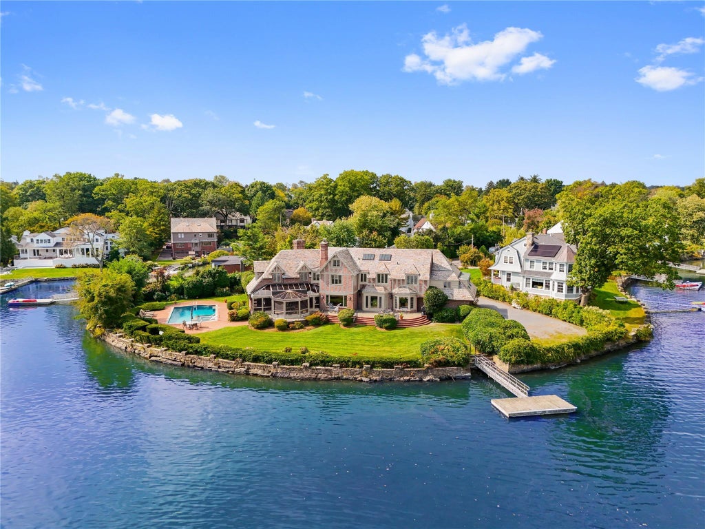 Introducing one of Larchmont Manor’s most exclusive waterfront retreats! A rare paradise with pool, spa and private dock nestled on a peaceful cove atop the glistening waters of Little Harbor Sound with 300 feet of waterfront. A setting so idyllic it’s like your own private island! This magnificent shoreline home is beautifully poised at the end of a quiet cul-de-sac on an exquisite 0.69-acre manicured property with level lawns, terraces for entertaining and a fabulous screened porch for coffee, cocktails or cozy dining! Inside is bright and breathtaking, a crisp white canvas with walls of windows for endless water views. Thoughtfully designed it offers a graceful fluid layout and highly versatile spaces – a stunning living room with fireplace where the view of coastal landscape is centerstage, sun-drenched office or flexible sitting room or playroom, sumptuous library or adaptable dining room – you choose! The family room is warm and inviting opening to a glorious kitchen with wraparound countertops and into a breakfast area also with water views that’s pure bliss! This home offers 5 beds and 4 full baths plus powder room. On the 2nd floor - a spectacular primary with soaring beamed ceilings and dazzling views, 2 WICs, and large ensuite bath; plus 3 additional bedrooms on this level. Two of the bedrooms are ensuite, and 4th bedroom connecting to hall bath. A few steps down is a privately positioned guest or au pair bedroom , full bath and convenient laundry room. On the 3rd floor is a finished attic area with skylights that’s a fun play space or storage. Plus, an elegant circular driveway and 3-car attached garage! Walk to the Village, schools, train, Manor Park & beach!