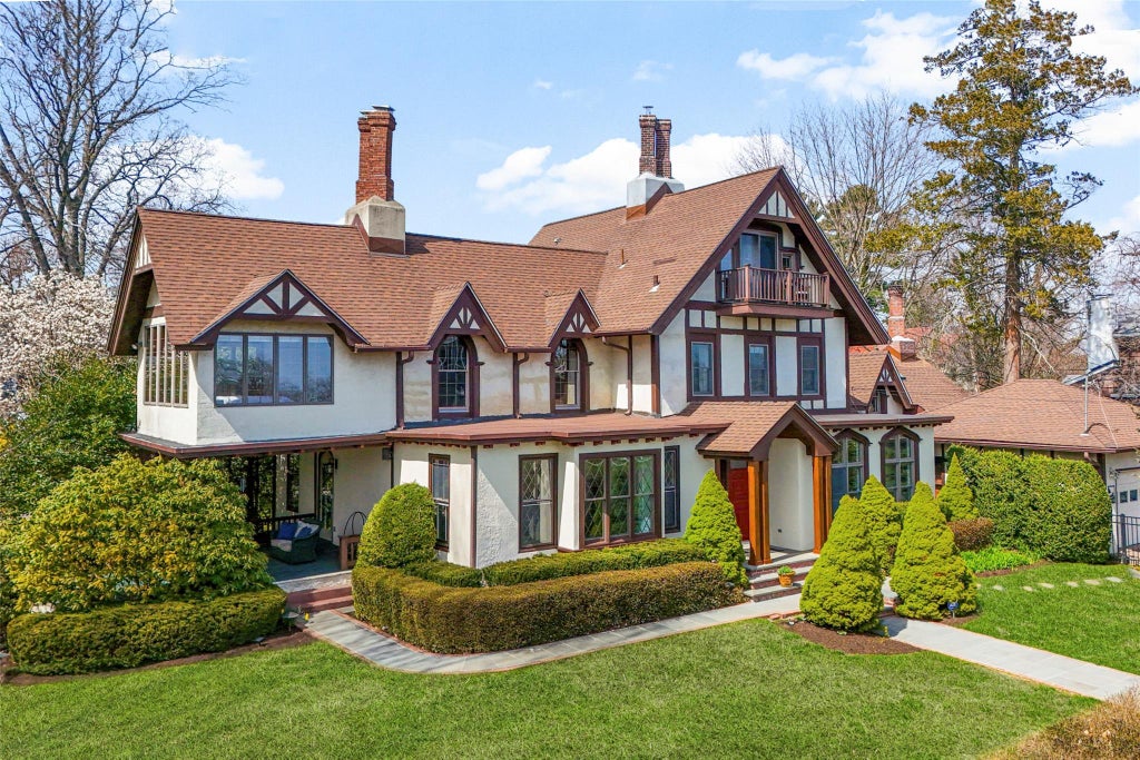 Steps from the Long Island Sound and perfectly sited on a wide, private corner property, architecturally stunning 78 Seaview Avenue is part of the charming waterfront community of Premium Point Park where residents enjoy water access and social activities with a community deck, dock and private park/playground. Rich in history, this distinctive 4-5 bedroom, 5-bath, 3-story, 5000 sq ft Victorian Tudor is highlighted by natural light; open, spacious rooms, many with water views; and superb indoor/outdoor flow. From the covered portico, enter the inviting foyer where you will immediately notice the lovely architectural details: graceful curved arches, large leaded glass windows, dramatic columns and staircase, multiple fireplaces, original floors, and high ceilings. Step into the front to back living room with fireplace and out to the peaceful side porch. Dining room with marble fireplace steps down to the open chef’s kitchen with beamed ceiling, large island, fireplace hearth and breakfast area. Wall of French doors opens to the outdoor kitchen area, expansive brick patio, heated in-ground pool and large play yard. The family room is the ideal spot for casual gatherings and a first floor bath/steam shower has handy door out to the pool. Open staircase brings you to the second story which includes: primary suite with water views, sitting area/fireplace, en-suite bath; 2 additional bedrooms, hall bath and door to versatile loft space/bath. The light, open third floor bedroom features brick chimney, beams, full bath and private balcony with breathtaking views of the Sound. This special home, property, and waterfront community is truly a tranquil retreat yet only minutes from restaurants, shops and transportation. ***Assessment grievance is being filed 6/1 and