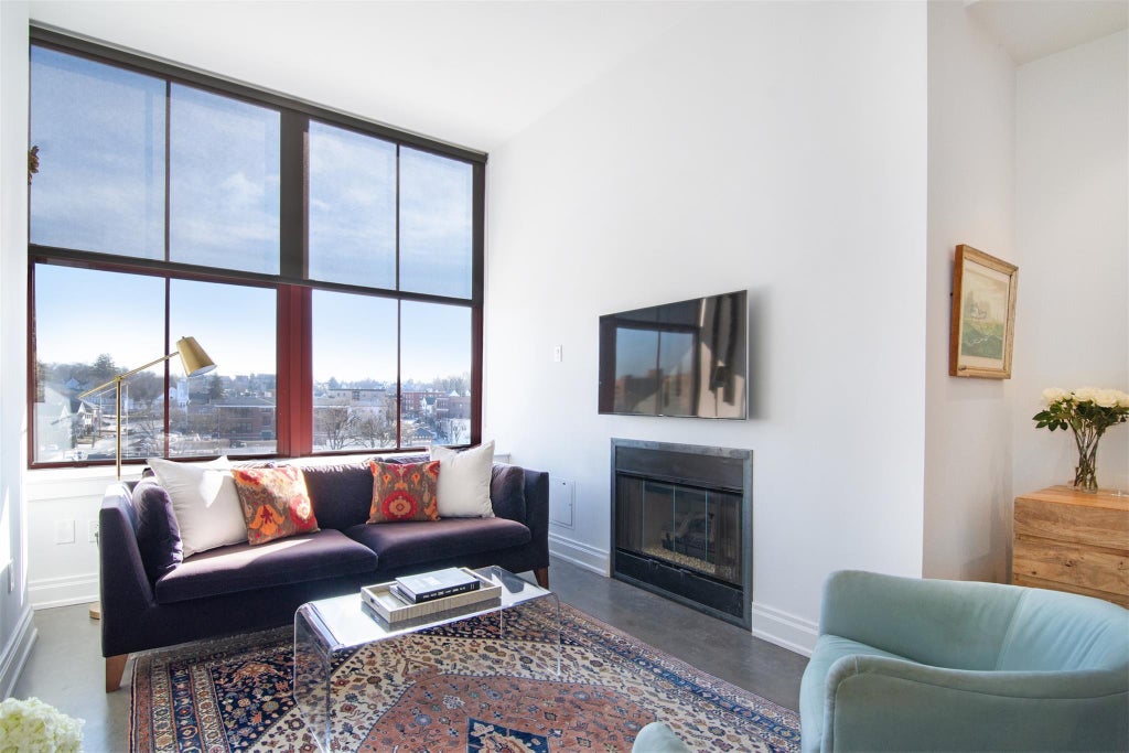 Welcome to this immaculate 2-bedroom condo at the iconic Rivervue, formerly the Revlon Building. Offering breathtaking top-floor views, this home features high, airy ceilings that create a spacious, loft-like atmosphere. The unit has been meticulously updated, including a sleek kitchen and modern baths, along with the added convenience of an in-unit washer/dryer. Enjoy the comfort of three-zone heating and A/C, a cozy fireplace, and stylish polished concrete floors throughout.The beautifully udpated kitchen is a standout, boasting gorgeous Cambria Quartz countertops, a glass tile backsplash, stainless steel appliances, and a Bertazzoni oven/range and microwave. The inviting living room features a fireplace and offers stunning treetop views, with a dedicated nook for a workspace and a separate dining area. The generous primary bedroom includes an updated ensuite bath with a double vanity, bathtub, and a large separate shower. The second bedroom is equally spacious, with ample closet space and easy access to the updated hall bath. Building Amenities Include:24-hour doorman, Fitness center, Community room, Playroom for children, Seasonal in-ground pool, Tennis court, Garage and outdoor parking (with guest parking available), Storage units, Dog friendly, , Beautiful lobby courtyard. With an exceptional staff and a location that combines luxury and convenience, this apartment truly falls into the “cream puff” category. Nothing left to do but move in and enjoy!