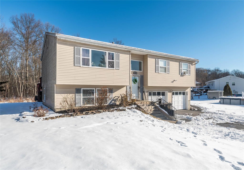 Welcome to this beautiful bi-level home located on a quiet cul-de-sac in the town of Newburgh! This spacious 4-bedroom, 3-bathroom residence offers an ideal blend of comfort, style, and outdoor entertaining space. Step inside to find a bright and airy floor plan, featuring a large living room with plenty of natural light, perfect for both relaxing and entertaining. The updated kitchen boasts modern stainless steal appliances, ample cabinet space, and a separate dining room that leads out to your private deck. The home’s four generously-sized bedrooms offer plenty of space for rest and relaxation. The master suite includes an en-suite bathroom for added privacy, while the other two bathrooms are beautifully updated. If you are looking for additional space for guests, you will appreciate the additional rooms on the lower level with a separate bathroom for guests. Outside, you’ll find a true oasis. The backyard features a newly installed above-ground pool surrounded by a spacious deck, ideal for summer gatherings. As the sun sets, enjoy cozy evenings by the fire pit. This home is conveniently located near schools, parks, shopping, restaurants, wineries, major highways and the airport. Don't miss out on the opportunity to make this home your dream home. Schedule a tour today!