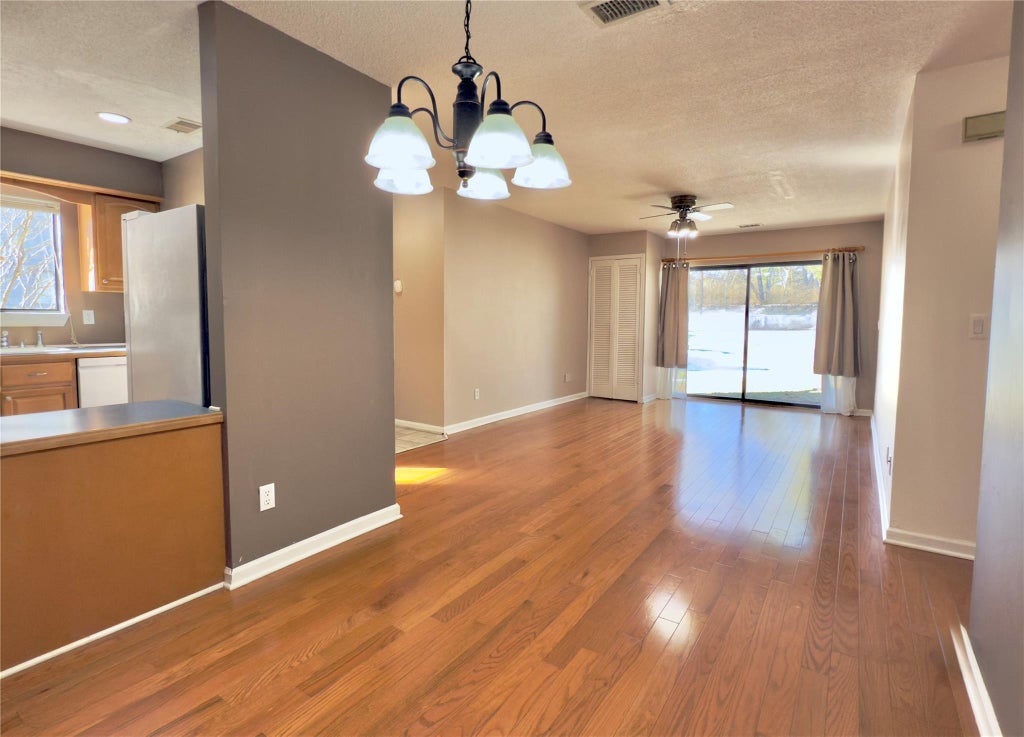 This meticulously maintained end-unit offers the convenience of single-level living with no neighbors above or below. Just steps from your designated parking space, coming and going is effortless. Inside, an open floor plan showcases beautifully updated hardwood floors throughout, adding warmth and elegance to every room. The spacious master suite features a large walk-in closet for ample storage. Located in the heart of Yorktown, this home is in a prime location, just minutes from shopping, dining, and with easy access to the highway for effortless commuting. A perfect blend of comfort, style, and convenience! Additional Information: Storage room, 1 year old dishwasher, 2 year old refrigerator, 3 year old washer/dryer