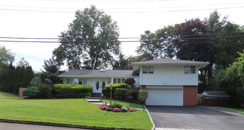 Welcome to Pinebrook Estates where this home offers the perfect blend of comfort and privacy in a quiet neighborhood with a playground. The large, level, fenced-in backyard is a standout feature, complete with a spacious patio, a shed for extra storage, and plenty of room for a potential pool and outdoor activities. This home has been thoughtfully updated, including new wood floors and doors throughout. The generous entrance hall, featuring a skylight, leads into a spacious living room with a beautiful wood-burning fireplace and formal dining room. The home offers flexibility with 3 to 4 bedrooms; the fourth room can easily function as a den or home office. The oversized, updated EIK has stainless steel appliances, granite countertops, water filter system, door to patio/backyard, and features a vaulted ceiling with a skylight, creating a bright and airy space. The large family room with sliding glass doors to the backyard patio is perfect for barbecues and gatherings. The primary bedroom boasts a renovated en-suite bathroom and ample storage. Additional highlights include recessed lighting throughout, custom closets, renovated primary and half bath, a 6 yr old roof, full basement with laundry room, cedar closet and additional storage space, alarm system, 2-car garage, an enlarged driveway for extra parking, outdoor lighting, sprinkler system, 200 amp electric service and a full-house generator for added peace of mind. This home combines a spacious, modern interior with a private, serene outdoor setting, making it an ideal place to call home. Roof 6/2019, Fence 12/2012, Hot Water Heater 2016. Included are the den wall unit, basement gym equipment, brown storage unit and 2 home safes. Convenient to highways and shopping. Move right in! A real gem!