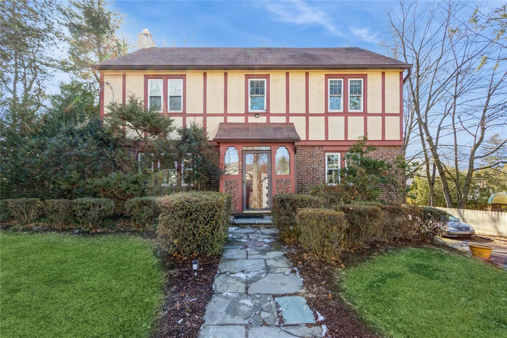 Opportunity awaits... Classic Colonial/Tudor style home. Approximately 2,294 square feet, this four-bedroom, two and a half-bathroom house features a living room with a fireplace, plaster walls, and original period details. The den offers a sliding glass door leading to a side deck. Hardwood flooring is present throughout. The bathrooms have been updated, and the home includes a tandem garage, a level backyard, and a large driveway. There is also pull-down attic access. The exterior is a combination of brick and stucco. The updated kitchen has a sliding glass door that opens to a deck and the yard. Spacious rooms, original period details, newer items to home, priced to sell. First time on the market in over 20 plus years. Kitchen cabinets and bedroom have been recently repainted. Close to all.