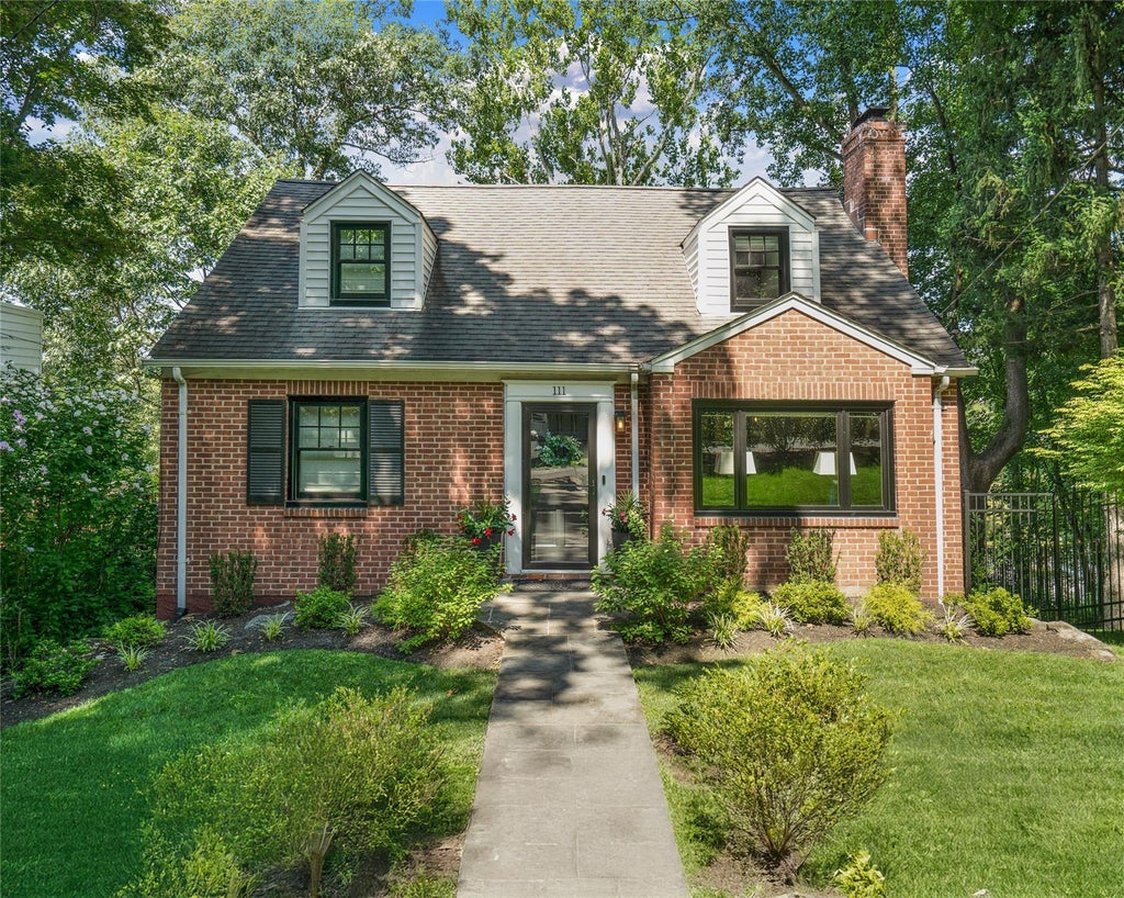 Exquisitely updated red-brick cape cod in award-winning Hastings school district will captivate you. Newly installed Pella Reserve black trim windows bestow a chic, contemporary accent to the classic red brick exterior, beckoning you to the stunning spaces within. From the foyer, view through an attractive archway the heart of the home...the open-concept living/family room, dining room and kitchen exuding a wonderful light, breezy and stylish ambience lent by the front-to-back sight lines, multiple exposures, and pop of the black-trimmed windows. Add the wood-burning fireplace that anchors the living/family room for gathering on those cold winter nights and the picture is complete! Accessible through the kitchen or hallway is the first floor full bathroom tastefully renovated with Kohler Modern Brass fixtures, crisp white ceramic wall tiles, and porcelain floor tiles. Two roomy bedrooms (each with double exposures and closets) round out the first floor, but either can be used as office or playroom...a versatile floor plan! Ascend to second level where two family bedrooms, a full bathroom, and a spacious primary bedroom that offers spectacular tree-top sunset views are found. Below, on the lower level is an expansive, inviting family room, updated powder room/laundry, and a mud area with walk out to a verdant, private backyard with patio. This large property is comprised of two tax lots, with the house situated on one fully fenced-in, picturesque lot and the adjoining vacant lot a blank canvas for house expansion or sale. Conveniently located near shopping, major highways, and public transportation. Greenburgh & Hastings recreation and Hastings Metro North parking eligible. Impeccably maintained, turn-key home offers it all. Taxes are prior to STAR.