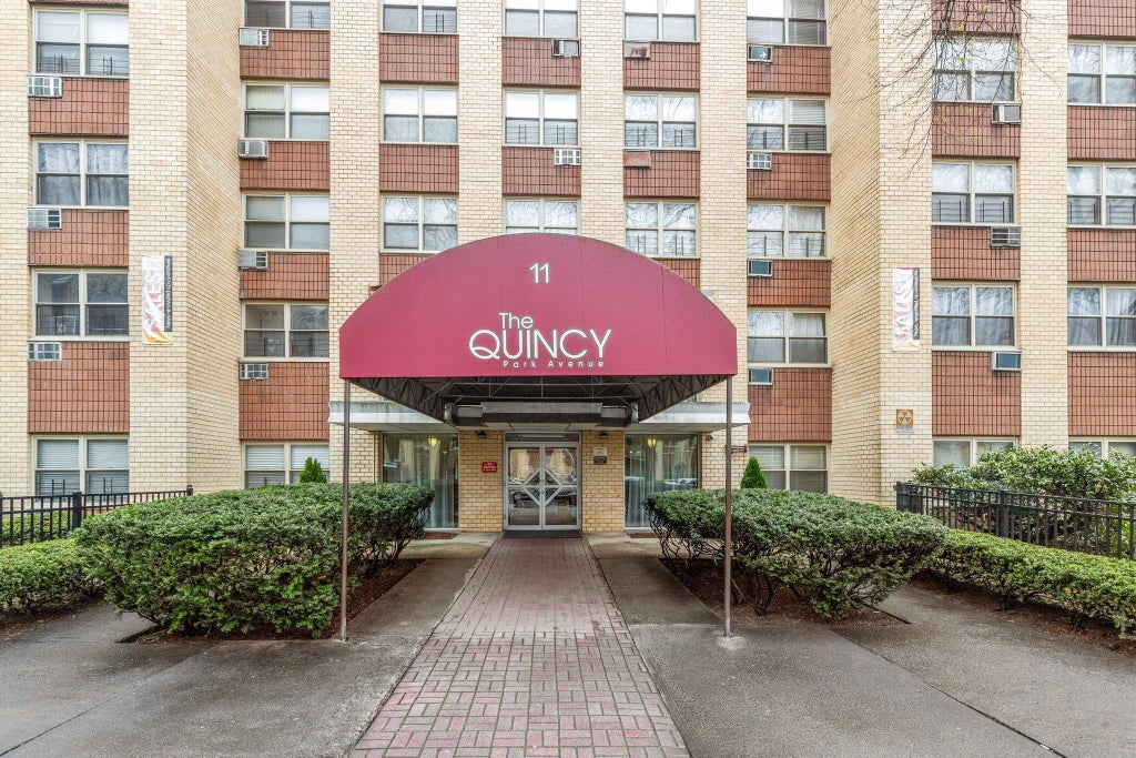 Welcome to the Quincy! This fourth floor, corner unit is a commuter's dream. The spacious living room offers plenty of natural light and easy balcony access. The passthrough kitchen features stainless steel appliances (dishwasher, built-in microwave, refrigerator, and gas oven/range) while also offering ample cabinet space and the potential for a breakfast bar. The dining room provides more than enough space for a formal dining experience. The primary bedroom features two closets and a en suite bathroom while the second bedroom is just as large. The second full bath sits just across the hall from the bedrooms and three additional closets throughout the apartment provide ample storage. Easy walk to buses for commuting within Westchester County. Easy walk to Metro North for commuting to NYC and Connecticut. Close to schools, shops, groceries and restaurants. Communal laundry room is available in the basement. No new dogs allowed; cats okay but limited to one. Parking is waitlisted.