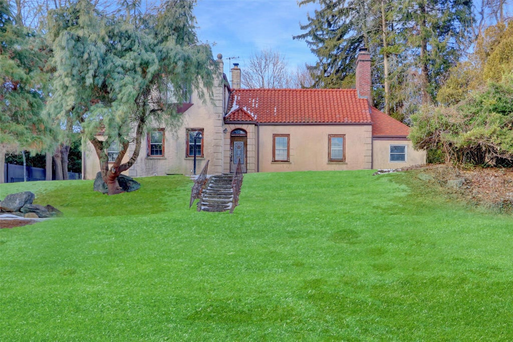 Amazing and majestic Tudor style home with clay roof, gorgeous original wood beams and trim provide the warmth and the nostalgia of days gone by. Living room with fireplace, spacious rooms, and exceptional potential. This home has a high elevation above the street and a prestigious appearance. Just a short distance from schools, parks, and other area amenities.