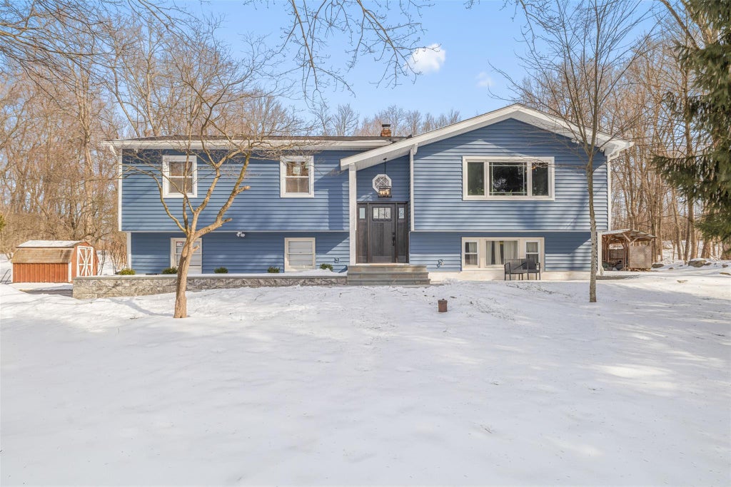 Beautiful 3 bedroom and 3 bath home sitting on 1.5 acre lot. 1st level includes large open living room with large bay window with a wonderful view for hours of enjoyment. Large eat in kitchen with stainless steel appliances and kitchen island, and formal dining room. Upper level also features all 3 bedrooms with Main Suite with newly renovated bathroom with walk in closet and upgraded motion censored lighting. Lower level includes bonus room and closet space and additional storage and half bathroom. Media area for entertaining and sitting area. Wood burning stove in lower level, laundry room and walk out access to backyard. 2 Car Garage with tons of storage and new opener with Wi-Fi and camera system installed for video monitoring and easy access. Roof 1 year old, fully owned solar panels to reduce electricity bills. Big Barn/Workshop with 100 amp electric and water accessibility. Close to major highway, and the MTA Salisbury Mills/Cornwall Station to NJ/NY. Miles from Stewart International Airport. Short drive to many local eateries and shopping. So many updates not enough space to mention. Don't mess the chance to see this one, stop by and take a look, you won't be disappointed.