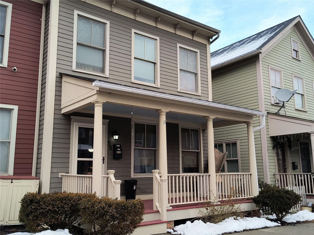 This home is priced to sell quickly! Located near Washington’s Headquarters State Historical Site and close to shopping, dining and entertainment! A charming home with a colonial look outside and a modern open concept inside. Lovely curb appeal with greenery skirting the spacious front porch. The porch is fenced and has plenty of room for sitting outside. Walk into the foyer to an open living room leading to the dining area and modern kitchen with breakfast bar. Large pantry/office area. From the kitchen, you can access the back deck leading to the fenced yard. This home, built by Habitat for Humanity in 2010 is energy efficient featuring bamboo flooring and has a designated parking spot! This home is a must see, don’t miss out on this opportunity.