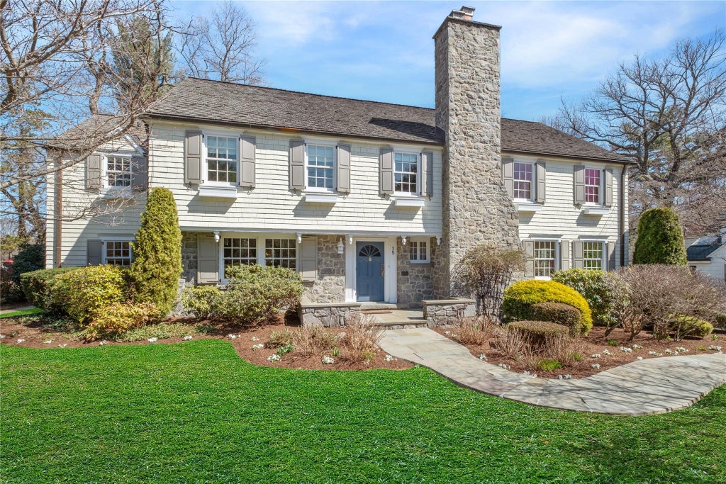 A stunning stone and shingle Center-hall colonial with quintessential English charm nestled in the heart of Larchmont’s prestigious Rouken Glen hamlet! This elegant home is encircled by lovingly manicured gardens that blaze with vibrant color through every season! Inside is beautifully updated and freshly painted with stunning millwork and graceful archways that foster openness and flow. Entering through a quaint vestibule this fabulous home transitions into a formal living room with beamed ceiling and fireplace, sun-drenched family room with walls of windows, a library with custom bookcase and a convenient mudroom and powder room. The chef’s kitchen offers a sunny breakfast area and French doors to the patio. Plus, there’s a large Butler’s pantry with wine storage, sink and 2nd dishwasher with swing door to the stylish dining room. On the 2nd floor is the glorious light-filled primary with WIC and spa-like ensuite, plus 2 additional beds with cedar closets that share a hall bath. One more bedroom and office/study on this level share a Jack & Jill bathroom, the office space has custom built-in filing cabinets. The walk up 3rd floor boasts a large attic room with cherry built-ins ideal for play, and an area for gym/yoga or additional office space. So many highlights – a 2-car garage, multi-room 11-zone audio system which extends to the patio, wood shingle roof, whole house generator, and asphalt driveway resurfaced in 2024! Walk to Murray Ave Elementary, steps to the Leatherstocking Nature Trail and close to train & Village!