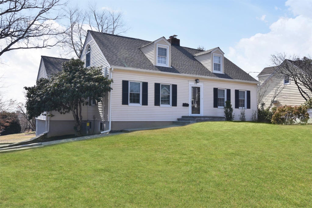 Nestled on an oversized corner lot in a picturesque and peaceful neighborhood, this expanded Cape Cod is move-in ready. Offering three bedrooms and two full baths—including a convenient first-floor bedroom and bath—this home provides ample space and comfort. Step inside to find a spacious living room with a cozy fireplace, a bright dining area, and a well-appointed kitchen featuring stainless steel appliances. The large family room boasts built-in shelving and patio doors that open to a beautiful Trex deck with Sun Setter awning, perfect for outdoor enjoyment. Second floor offers a vaulted ceiling bedroom with skylights, full bathroom with sky lights and second bedroom with ample closet space. Hardwood floors run throughout the home as well as the interior freshly painted and cleaned. Additional features include central air conditioning, an irrigation system for the entire property, and a two-tiered backyard designed for entertaining, complete with a bluestone patio off the deck. With endless expansion possibilities, this property offers room to grow and personalize. A tandem heated garage and an extended driveway provide ample parking for at least five cars. If you’re looking for a home in a serene community that’s ready for you to move right in, this is the one.