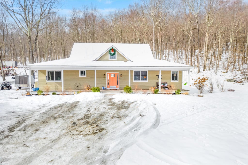 This beautiful ranch-style, modern farmhouse built in 2020 offers the luxury of new construction without the wait! Situated on almost 5 acres, this property offers peace and privacy. The open-concept layout with vaulted ceilings provides a spacious and airy feel, with tons of natural light flooding the space. Enjoy the modern kitchen with stainless steel appliances, dinning area with doors leading to the screened-in back porch, ideal for entertaining, and living room with electric fireplace. Home features primary bedroom with luxurious ensuite with a walk-in shower, two more generously sized bedrooms and a full bath. The custom fire pit in the backyard is perfect for relaxing and enjoying those summer nights! Excellent location, close to Route 84, shopping, restaurants and more!