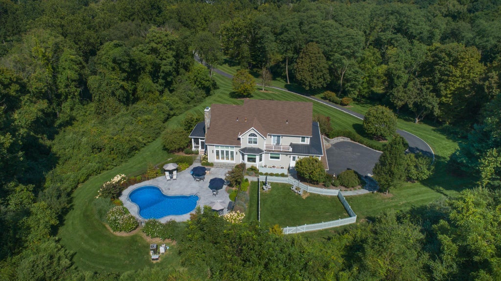 Nestled within the prestigious Brady Brook Falls subdivision on sought-after Quaker Hill, this exquisite colonial offers an unparalleled blend of elegance, privacy, and modern convenience. Situated at the end of a serene cul-de-sac, the home is surrounded by picturesque horse farms and country estates. A long, private driveway leads to this stunning 6.65-acre retreat, complete with a heated saltwater inground pool, providing the ultimate sanctuary. With 4,683 SF of meticulously designed living space, this home boasts grand-scaled rooms, soaring ceilings, and expansive windows that invite natural light while offering seamless integration with the surrounding landscape. The craftsmanship is evident from the moment you step inside, with high-end finishes, an open-concept layout, and captivating spaces that elevate the home's sophistication. The first floor features a gracious entryway leading to a formal dining room with ample seating for ten, perfect for entertaining. A magnificent two-story great room with stone fireplace and interior balcony opens to a sunlit living room with French doors leading to a screened-in porch. From the great room, a wall of French doors leads to the poolside patio. Adjacent is the designer kitchen, a culinary dream with a center island that seats four, granite countertops, a quartz backsplash extending from counter to ceiling, and top-of-the-line Wolf, Subzero, and Miele appliances. The kitchen also includes a barista bar, abundant cabinetry, and a pantry. Completing the first floor is a private den/office, an inviting primary suite with an ensuite bath, a mudroom, and a stylish half bath. Upstairs, the second grand-sized primary suite is a true retreat, featuring a sitting room with a cozy fireplace, a private balcony, dual walk-in closets, and a spa-like bath. Two additional bedrooms share a well-appointed bath, while a convenient laundry room completes the level. The expansive 2,767-square-foot unfinished basement presents endless possibilities for future customization. This home is designed for both comfort and practicality, with a three-car garage equipped with a Tesla charger, a Generac 24 kW generator, a Culligan double osmosis water purity system, a Qolsys IQ wireless smart home security system with ADT monitoring, a Sonos system with speakers in the interior and exterior of the home, and an OmniLogic pool automation system. The outdoor spaces are equally impressive, featuring a covered mahogany porch, a screened-in porch, and a heated saltwater pool surrounded by a designer pressed concrete patio, BBQ island, fenced-in play area, extensive stonework, and lush, manicured lawns. Brady Brook Falls offers miles of winding woodland trails, with a tranquil pond and scenic bridge just across the street for easy access. While this private haven provides a serene escape, it is just minutes from the Village of Pawling, a charming 18th-century town known for its fine dining, boutique shops, antique stores, cultural attractions, and seasonal farmers market. With its very own Metro North station, Pawling offers a convenient 90-minute train or car ride to NYC, making this extraordinary estate the perfect blend of refined country living and accessibility.