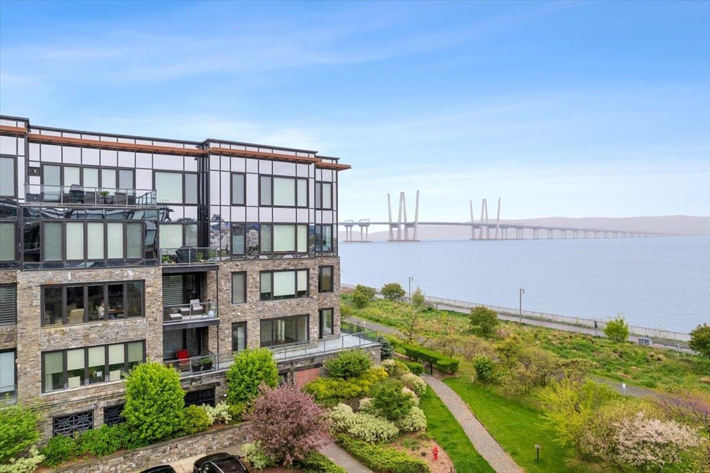Welcome to Hudson Harbor Lookout South, a luxury waterfront maintenance free lifestyle community. Stunning Hudon River views and natural light stream into this Pristine 2 Bedroom 2 En-suite bathroom PLUS large size Den/Office residence and large private balcony with unobstructed bridge view for entertaining. Inside Features include: 9 1/2 ft. ceilings, energy efficient Marvin windows/doors, detailed crown moldings, custom closet systems, solid wide-plank hardwood flooring throughout, Den/Office with custom cabinetry and phantom sliding doors, marble primary suite spa like bathroom with soaking tub, recessed lighting and Hunter Douglas shades. A private balcony off the living room offers a stunning panoramic Hudson River view where you can watch the boats glide effortlessly up the water plus enjoy the bridge illuminated in the evenings. Your southwest penthouse location is complete with distant views of the New York City skyline, Palisades Mountain cliffs and beautiful Tarrytown hills. The chef's kitchen includes high end custom cabinetry and stainless-steel appliances. You are just Steps away from the Scenic Hudson River Walk, upscale Restaurants, Boutique shopping and the brand new DeCicco's gourmet market. The Metro-North Train Station is only a three-minute walk. Enjoy a picturesque 38-minute commute along the river to Grand Central Station. 2 indoor garage spaces with private EV charging station. An on-premises storage unit is included.
