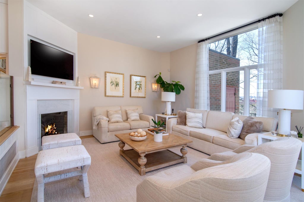 Sited perfectly on a west facing knoll, this stunning end unit townhouse offers consummate privacy and complimentary sunsets over the charming rooflines of Bronxville. In 2021, the current owners elevated the interior to perfection by installing gorgeous new white oak floors and custom new staircase railings throughout three floors of well renovated living space. The dramatic first floor open plan features a new kitchen with Taj Mahal quartzite countertops, stainless steel appliances and a newly designed glass railing which optimizes the view of the expansive sunken living room below. In the living room, the new oversized windows offer two sunny exposures and the corner gas fireplace with new marble surround is a key design element. A private patio is accessed from the living room. Upstairs, the primary bedroom offers a terrific re-built walk in closet as well as a generous ensuite bath with new quartz countertops. A second bedroom down the hall features another ensuite bath with new quartz vanity. Best of all, the third floor bedroom/family room offers vaulted ceilings, new custom millwork and raised paneling with state of the art media/surround sound acoustics. And an oversized private terrace further elevates the third floor functionality. Freshly updated third floor bath with new quartz, washer dryer and great storage. All this a quick hop away from fabulous Bronxville shops, train and school! A rare bird