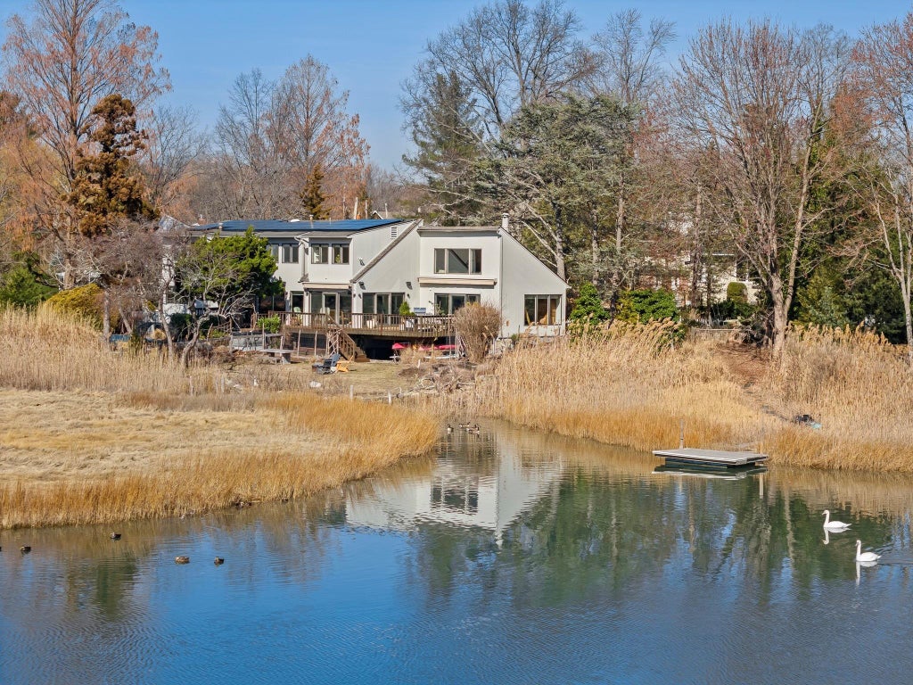 Experience waterfront living at its finest in this beautifully renovated 4/5 bedroom contemporary home, offering breathtaking views of the tranquil Van Amringe Mill Pond from nearly every room. Designed with meticulous attention to detail, this home seamlessly combines luxury, sustainability, and nature. Step into the expansive, sun-drenched open-concept living area, where soaring ceilings and a floor-to-ceiling wall of glass sliding doors frame the stunning water views. The chef’s kitchen flows effortlessly into the dining and sitting areas, creating the perfect space for both entertaining and unwinding. The sliding doors open to a generous wraparound redwood deck, ideal for al fresco dining, lounging, or simply soaking in the peaceful vistas of the water and the sparkling inground pool. The inviting living room, complete with a cozy fireplace, also overlooks the water, as does the tranquil yoga loft, further enhancing the serene atmosphere throughout the home. Upstairs, each spacious bedroom boasts panoramic water views, while the beautifully renovated bathrooms provide a luxurious touch. Every element of this home has been thoughtfully crafted with sustainability in mind, featuring organically planted gardens and composting areas. The outdoor space is perfect for entertaining, with a stunning pool and hot tub offering the ultimate relaxation experience. This home comes unfurnished, fully furnished or partially furnished ( your choice), with organic grounds maintenance and pool service included. Simply grab your kayak or paddleboard and enjoy direct access to the water, ideal for exploring the sound, birdwatching, or immersing yourself in nature’s beauty. Welcome home!