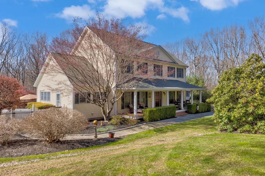 This Colonial home is absolutely lovely and is situated in a serene and beautiful setting. With 7.88 acres of land on a quiet country road, it offers both privacy and convenience. The design and features are perfect for comfortable living, whether you're looking for a year-round residence or a weekend retreat. The home welcomes you through a charming rocking chair front porch, leading into a tiled foyer that flows into a family room with a stunning cathedral ceiling and a cozy wood-burning stove. The oversized deck is an excellent feature for outdoor entertaining or enjoying the peaceful surroundings. The kitchen is a chef’s dream with high-end appliances, including a Sub-Zero refrigerator/freezer, Thermador double oven, and a 6-burner gas cooktop with a vented hood, all complemented by granite countertops. The first-floor primary bedroom is a private retreat with its own bath and walk-in closet. For entertaining, the home has a formal dining room and living room, a powder room, and a laundry room, along with easy access to the saltwater heated pool and hot tub. Upstairs, the home offers 3 additional bedrooms, including one with an ensuite bath, and another full bathroom. The office with attic access is a great space for remote work or additional storage. The basement is another highlight, featuring a family room with surround sound and a Jotul gas stove, as well as an additional full bath. The heated garage has plenty of space and includes a pellet stove and a ceiling-mounted Modine Heater for added comfort. Outside, the property boasts mature plantings, a large garden, and a shed, creating a peaceful and private oasis. Plus, the location is just a short distance to Metro North, golf courses, rail trails, and restaurants, giving you easy access to the best of the Hudson Valley. This home truly offers the perfect combination of luxury, convenience, and privacy!