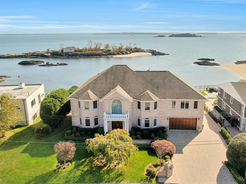 Nestled in the exclusive Isle of Sans Souci enclave of New Rochelle, renowned for its serene seaside ambiance and proximity to the Long Island Sound sits this exceptional 5800 sq ft Brick Center Hall Colonial offering a rarefied living experience with breathtaking panoramic views. Step inside and be captivated by a grand spiral staircase, heated marble flooring, and soaring 20 ft ceilings, setting an unmistakable tone of luxury and sophistication. The sunken Living room, framed by expansive windows, provides and unparalleled front row seat to the mesmerizing LISound. Entertain in style in the formal dining room, adorned with custom cabinetry, intricate molding, and timeless elegance. The gourmet EIK is designed for culinary exellence, featuring custom mahogany cabinetry, a large island, high-end appliances, and sleek quartz countertops and backsplash. A sundrenched breakfast area, with seating for 6, offers the perfect spot to enjoy stunning views over the water. The spacious family room is a true showpiece, boasting 20 ft ceilings, a grand wood-burning fireplace, and an adjacent fully equipped bar area with a wine refrigerator and sink ideal for effortless entertaining..Sliding doors seamlessly connect the indoor and outdoor spaces, leading to a slate-tiled patio with a built in barbecue grill and endless water views.. The landscaped garden enhances the tranquil coastal setting, while your private launching ramp offers direct access to kayaking and paddle boarding on the Long Island Sound..The main floor also includes an elegant powder room, a convenient laundry room, and two versatile bedrooms perfect for a primary 1st floor bedroom, guest quarters, home office or a creative space. Upstairs, the primary suite is a luxurious private retreat, offering breathtaking water views, an elegant spa-like en-suite bath, and expansive his and her closets, including a dedicated shoe closet. An additional spacious bedroom, full bathroom and a bonus room -ideal for a gym, media room, additional bedrooms or a private study complete the upper level. Unfinished basement is approximately 2800 sq feet of endless possibilities. The exclusive Sans Souci Beach Club with a very active Home Owners Association Annual dues ($350 includes private beach access, use of bocce courts, mooring and gazebo), and pool and tennis courts an additional fee of $750...