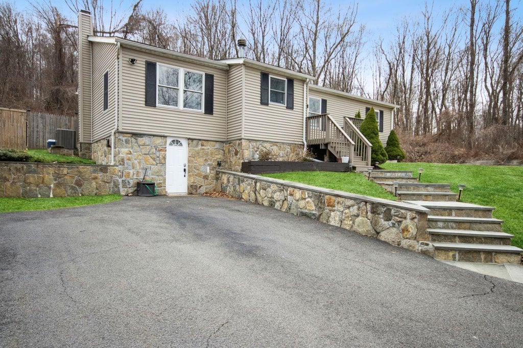 This charming 2-bedroom, 2-bath home is set back from the road, offering a private and peaceful retreat on 1.2 acres with stunning mountain views. Minutes to I-84. The spacious primary bedroom features an updated ensuite and French doors leading onto a deck, creating a serene space to unwind. The living room boasts an electric fireplace, which can be converted back to a wood-burning fireplace if desired, adding warmth and character to the space. An additional room provides flexibility as a den/office or bedroom, while the expansive family room downstairs, with egress windows, is perfect for gatherings or relaxation. Kitchen w/solid cherry cabinets with glass display. The home also includes an unfinished basement with a washer and dryer, providing ample storage and future potential. The fenced backyard offers a wonderful outdoor space for leisure and enjoyment. Don't miss your opportunity to own this wonderful home.