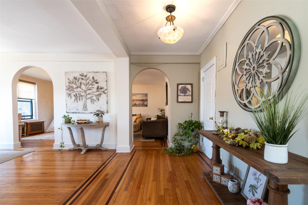 Nestled in the vibrant heart of downtown New Rochelle, this beautifully renovated two-bedroom co-op blends timeless architectural charm with contemporary upgrades. The chef's kitchen features granite countertops, a sleek breakfast bar, and seamlessly connects to a sun-drenched dining room, ideal for hosting memorable gatherings. The spacious living room offers versatile seating arrangements, enhancing your entertaining possibilities. Two generously sized bedrooms and a newly updated marble hall bath provide tranquil living quarters. Conveniently located near shopping, transportation, and parks, this property combines comfort with accessibility