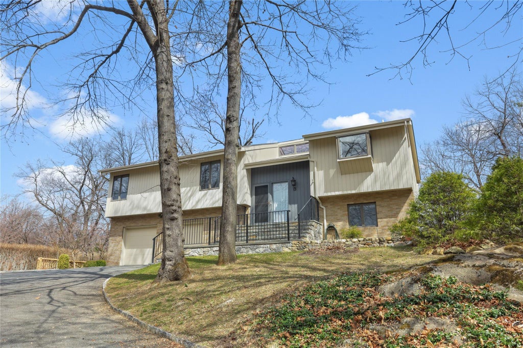 Welcome to this contemporary raised ranch in the heart of Pleasantville, offering both convenience and comfort. The impressive oversized bluestone front steps set the stage for this home. An open floor plan on the main level boasts a living room and dining room with a cathedral ceiling, a cozy fireplace, natural sunlight from the large clerestory windows, and access to the deck. The kitchen features a stainless steel refrigerator and stove, ample counter and storage space, and room for a table or large island. Down the hall you will find the primary bedroom with two double closets and a private bath, two additional bedrooms and an updated hall bath. The lower level is bright and welcoming, with a spacious family room featuring recessed lighting and a radiant heated tile floor. A full bath, laundry room with a sink and utilities and access to an oversized 2-car garage complete this level. Outside, enjoy entertaining on the back deck with a beautiful view, a flagstone patio, pond, and mature shrubs that enhance the landscape. This home is close to all village amenities including: schools, park, shops, theater, Farmer’s Market and train to NYC. Don’t miss the opportunity to call this your home.
