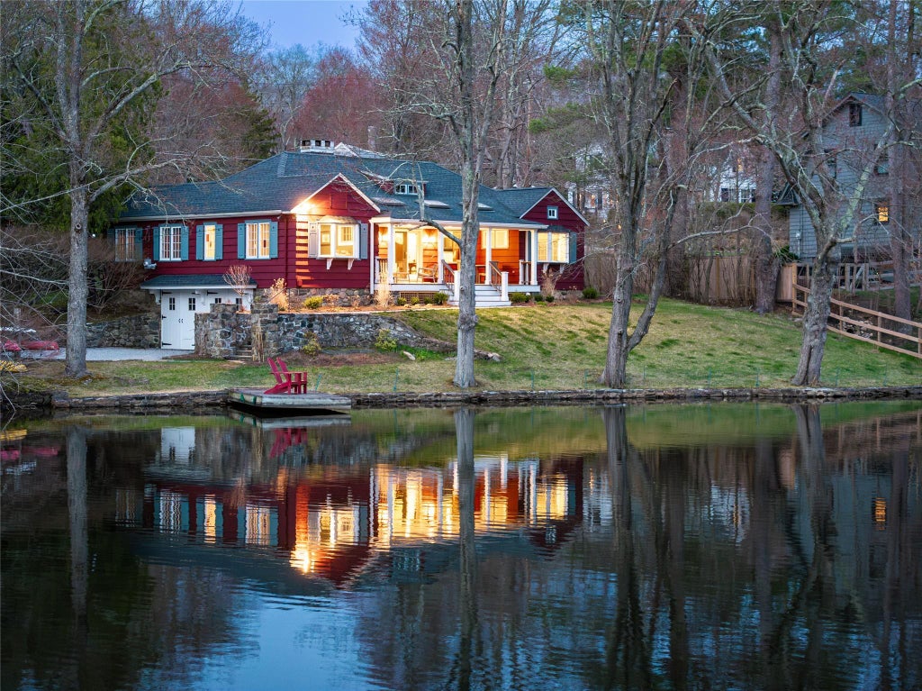 Magical Lake front original lodge style home. Commanding views on Lake Truesdale from your private dock & covered skylit porch year-round. A dramatic spacious main living area with wide plank hardwood floors, oversized windows & French door overlooking the lake. Original wood details & bookshelves accent the prominent wood burning fireplace. Plus, a reading, relaxing or TV room. Large chef's kitchen, induction cooktop, center island, vaulted ceiling, large dining area with front to back window views. Directly off the kitchen the large family room addition with soaring ceiling, dramatic architectural angles & beams provides access to front property entrance. The primary bedroom & bath is positioned privately with a double window exposure for both early morning & late afternoon sun. The additional two bedrooms have amazing lake views and share a hall bath. There are 3 full baths. In the finished lower level, there is a laundry area, full bath and access to the heated garage. With 2025 SF on .31 acres of 153 ft direct water access this home is all about enjoying nature, fishing, boating and relaxing. Enhancements include new landscape, path, above ground Roth tank, gutters, upgraded heat in primary suite & 2 car garage, upgraded sump pump and drainage system. Finished lower level adds 306 SF. Electric run boats are also permitted. Nearby local town park. Impeccable move in ready home with many upgrades done in 2024. Enchanting lakeside retreat year round. Sunset showings highly recommended!