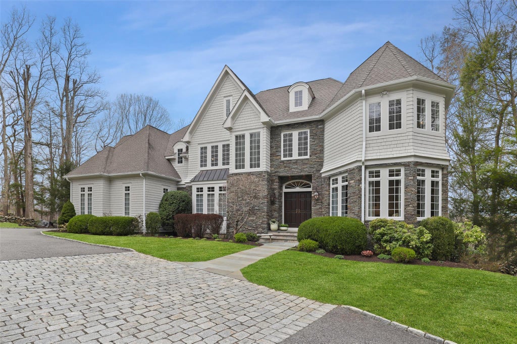 Modern Colonial Retreat with Reservoir Views at 1616 Hunterbrook Road. Experience refined living in this custom-built, meticulously maintained Colonial, privately set on 5 wooded acres with commanding views of the Croton Reservoir. Designed for effortless luxury and everyday comfort, this young 2005 residence offers over 5,100 sq ft across two levels—plus an additional 1,776 sq ft of a beautifully finished walk-out lower level. Step into a dramatic two-story entry where natural light pours in, highlighting exquisite millwork and thoughtful architectural detail throughout. An open floor plan flows seamlessly from the elegant living and dining rooms to the expansive kitchen and family room, anchored by a striking, wood burning fireplace. French doors open to a spacious deck—perfect for entertaining or quiet mornings overlooking the water. Work from home in the richly appointed office/den with built-ins and a second fireplace, or take the oak-paneled elevator, which accesses all three levels, to your finished lower level with full bath and patio walk-out—ideal for a gym, media room, or guest suite. Upstairs, four generously sized bedrooms include a serene primary suite, while a rear staircase and second-floor laundry add everyday ease. A rare offering that blends privacy, sophistication, and panoramic views—1616 Hunterbrook Road is the lifestyle property you've been waiting for.