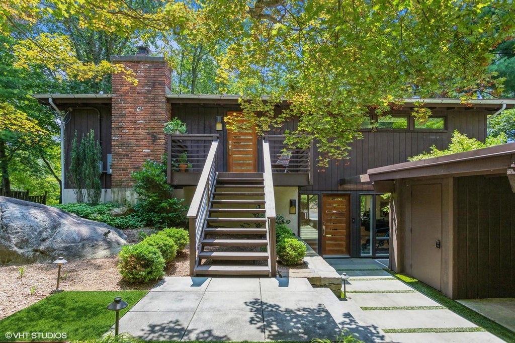 Available for rent, with a two year term or longer, starting August 1, 28 Mallard Rise in Tarrytown, NY, offers a mid-century modern home where natural light and thoughtful design create an inviting retreat. Tucked into a peaceful neighborhood within the Village of Tarrytown, this residence lies in the Irvington School District, with bus service for students from kindergarten through high school. Rivertown Rose is delighted to present this 2,300-square-foot sanctuary, ready for its next residents.