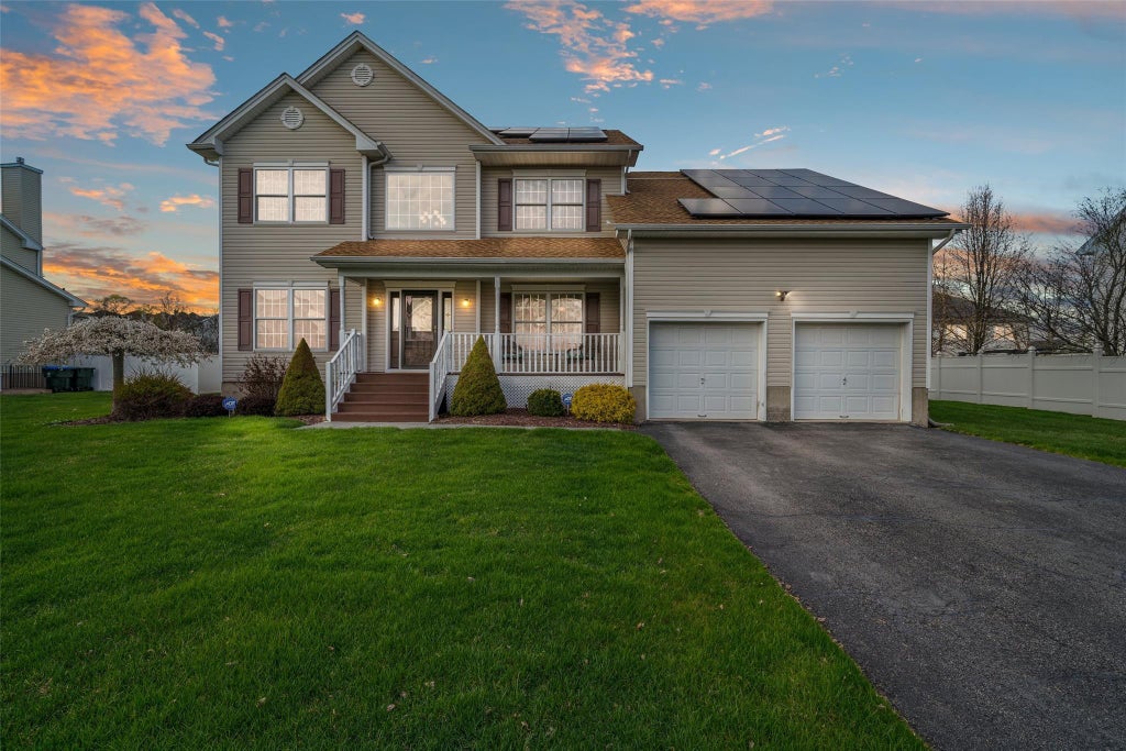 Welcome home! When you think about picture perfect, this is what you are thinking about! Nestled in the heart of the beautiful and warm community of The Reserve and located within the award winning Cornwall school district, where else would you rather be! The home itself is in immaculate condition with nothing to do but unpack! Envision your family gatherings in a meticulously maintained yard, leveled, and fenced for privacy. Or if you rather sit on your country style front porch enjoying your morning coffee or watching the sunset, either way you can't go wrong. Now stroll inside to a vaulted ceiling grand entrance, featuring a picturesque chandelier lit foyer. Hardwood like flooring will lead you throughout your main level all the way past your open floor plan kitchen into a cozy family room with a wood burning fireplace. There are plenty of rooms to go around for everyone, with a flex space that could serve as an office, playroom, gym, etc., naturally lit formal living and dining rooms, mud room/laundry room, as well as a powder room gives you everything that you need on one level. Wander upstairs to 3 generous size bedrooms for children, guests, or family, along with a centrally located bathroom to serve them. Behind the grand entrance of double doors you will find bedroom number 4, an unmatched Primary suite, equipped with a full sitting area, walk-in closet, and an ensuite bathroom featuring a jetted spa tub and separate stand up shower, as well as a dual vanity for superb convenience! Downstairs you will find a perfectly maintained, wide open blank template, walk-out basement that is ready to be transformed into anything that you may desire! Equipped with like new utilities and a purposeful upgrade that features two hot water heaters for this oversized home. No need to wonder how the greens outside are perfect all year round, you too will also be able to take advantage of the professionally installed irrigation system to keep your lawns in peak condition! Lastly, never fear opening a utility bill again, as this house features solar panels that will keep you seeing unimaginable savings monthly with the amounts of electricity they generate and store! I truly do not want to sound cliche, but trust me when I say, do not wait, this one will not last long!