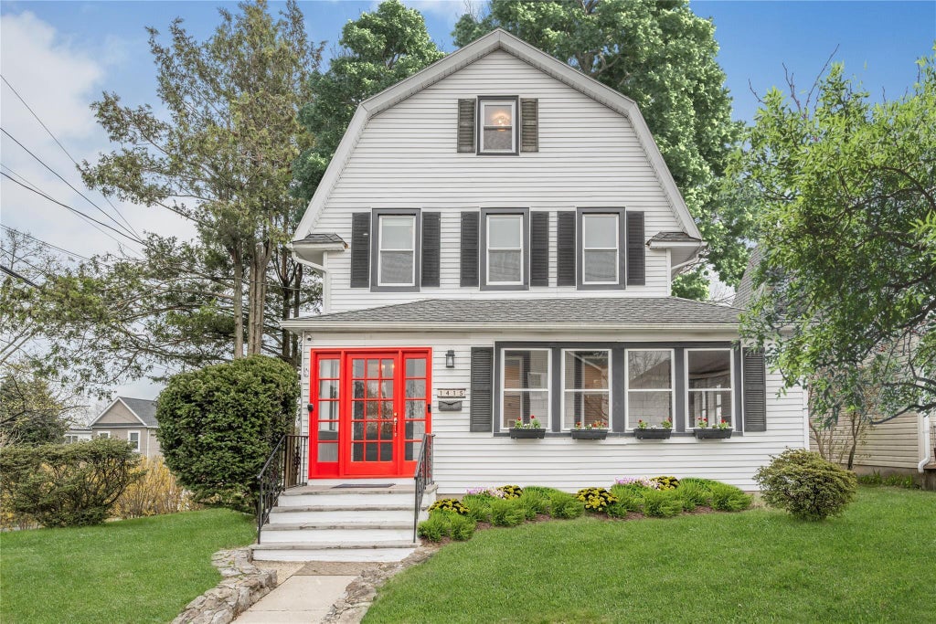 This charming white residence with a bold red door sits proudly atop a hill on a picturesque, tree-lined street—offering standout curb appeal and a warm welcome. Classic character meets modern comfort throughout. Step onto the inviting wrap-around enclosed porch—an incredibly versatile space that can serve as a mudroom, rec room, play area, or entertaining zone. Thoughtful updates elevate every corner. The main floor features a newly added powder room, a welcoming foyer, and abundant natural light streaming through new windows. The kitchen boasts custom cabinetry, and the main-level laundry adds convenience to daily life. Upstairs, you'll find refreshed bedrooms and bathrooms, including a flexible primary suite designed for rest and rejuvenation. The second and third floors feature new flooring, stylish light fixtures, and beautifully updated bathrooms. Perched among the treetops, the third floor offers a bird's-eye view of the neighborhood and a tranquil retreat. The walk-out basement presents exciting potential—ideal for a gym, studio, media room, or beyond. Out back, a private two-tiered yard sets the stage for both entertaining and peaceful outdoor living. The spacious two-car detached garage provides ample storage for vehicles and gear. Ideally located just a short stroll from Florence Park, you’ll have easy access to nature trails and recreation. Nearby train stations make commuting to the city seamless, offering the perfect balance of suburban serenity and urban connectivity.