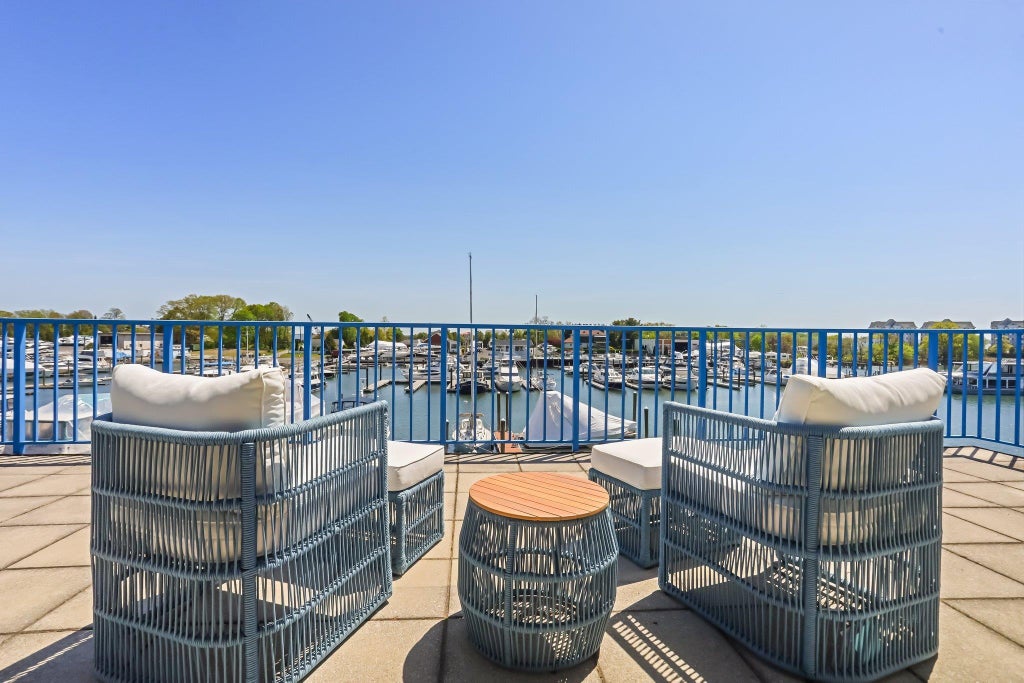 Exceptional Waterfront Living with Unrivaled Views. Nestled within an exclusive 16-residence boutique enclave, this impeccably renovated 2-bedroom, 2-bath home is a serene sanctuary offering million-dollar views and effortless luxury. Designed with both elegance and ease in mind, this no-step residence provides direct access from parking to unit—no stairs, no stress. Inside, natural light pours through expansive windows, illuminating the exquisite details throughout. From wide-plank wood flooring to radiant heated kitchen and bath floors. The open-concept living space is anchored by sleek quartz countertops, high end appliances, wine cooler and designer finishes, creating a sophisticated backdrop for daily living and entertaining. The tranquil primary suite features a custom dressing room that flows into a spa-inspired en-suite bath, delivering a private retreat designed for comfort and indulgence. A spacious secondary bedroom and full bath offer versatility for guests or work-from-home needs. Step outside to your oversized private terrace, where unobstructed water vistas become the perfect backdrop for morning coffee or sunset gatherings. Natural gas on the patio allows for seamless al fresco cooking and entertaining. Additional 300 square feet on patio More highlights include in-unit laundry, radiant heat floors in the bathrooms, retractable awning on the patio, two deeded parking spaces, access to a boat slip and dock, plus convenient on-site storage. Perfectly situated within a short distance to Glen Island Park, the Long Island Sound, NYAC, Pelham Country Club, and charming local shops. This is more than a home—it's a lifestyle.