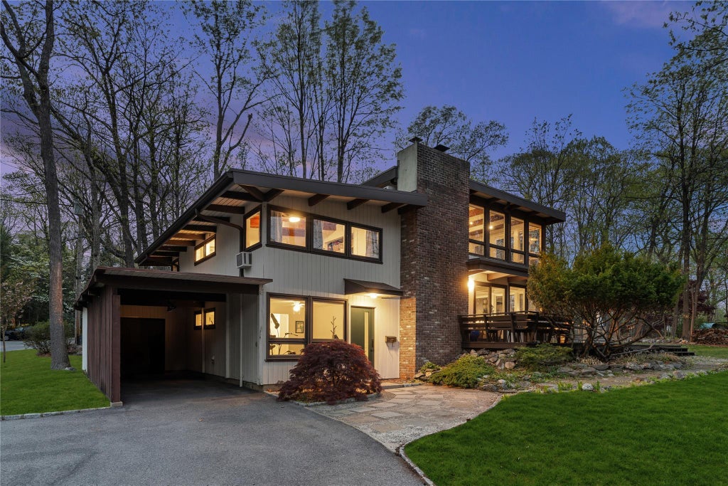 Welcome to 41 Eastern Drive, a rare and exceptional mid-century modern gem in the heart of Ardsley. Lovingly updated and meticulously cared for, this unique home offers a seamless blend of iconic midcentury design and modern comfort. Set on an expansive, beautifully landscaped lot, the property features lush gardens, a newly added firepit, and a sweeping, level backyard—perfect for entertaining or everyday enjoyment. Inside, the home’s distinctive architectural details shine, with exposed beams, wood accents, and walls of glass that flood the interiors with natural light and invite the outdoors in. The newly renovated chef’s kitchen opens to a spacious dining area and expansive wrap-around deck, creating an effortless flow for gatherings. A large living room anchored by a wood-burning fireplace and sliding glass doors enhances the home’s signature indoor-outdoor connection. The flexible layout includes a generous entryway and mudroom, a laundry room with half bath, and a convenient main-level bedroom. Upstairs, you'll find two additional sun-filled bedrooms with generous closets, an updated hall bath, and a serene primary suite featuring floor-to-ceiling windows, a refreshed en-suite bath, a walk-in closet, and a convenient office area—perfect for working from home or quiet study. A circular driveway, carport, and additional storage complete this truly special property. Mid-century modern homes like this are a rare find—don't miss the opportunity to make it yours. Additional photos will be available Tues 4/29.
