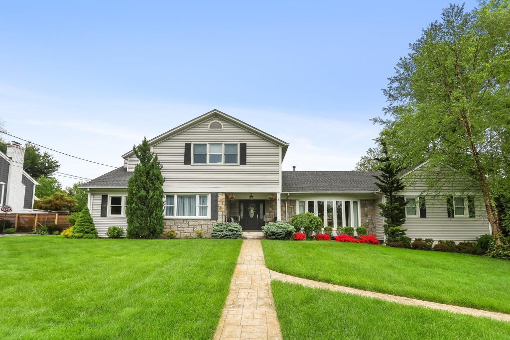 Welcome to 35 Rockwood Place – A Beautifully Maintained Home Designed for Living and Entertaining Step into this elegant residence through a grand two-story foyer that sets the tone for the refined interiors. The spacious formal dining room is highlighted by a stunning bay window, soaring ceilings, and elegant crown molding—ideal for hosting gatherings or enjoying quiet family meals. The heart of the home is the inviting family room, complete with a cozy gas fireplace framed by classic white built-ins. Glass French doors lead seamlessly to the expansive deck and backyard oasis, where you'll find a retractable awning, a beautifully maintained patio, and an beautiful heated in-ground salt water pool which is secured with a childproof fence. The bright and functional eat-in kitchen is a chef’s dream, featuring granite countertops, stainless steel appliances (including a double oven, microwave, refrigerator, dishwasher, and wine cooler), and large windows that flood the space with natural light. Under-counter seating and ample cabinetry make it perfect for both everyday use and entertaining. A nearby pantry and mudroom add convenience, with direct access to the backyard, pool area, and a separate entrance to the basement. Down the hallway, a large closet and a full bathroom precede a luxurious first-floor master suite. This serene retreat features high ceilings, a private en-suite bathroom with a walk-in shower, and a spacious walk-in closet. Two additional generously sized bedrooms complete the main level, offering comfort and flexibility for guests or family. Upstairs, a charming sitting area provides access to a private storage room. The upper-level primary bedroom is a true sanctuary, boasting hardwood floors, a walk-in closet, and a spa-like en-suite bathroom with a Jacuzzi tub and walk-in shower. An additional large bedroom with gleaming hardwood floors and ample closet space adds versatility to this level. The full basement offers impressive space with high ceilings, a powder room with shower, two washing machines, a dryer, and direct access to the two-car garage. Four separate rooms provide abundant storage, ideal for organization, hobbies, or future customization.