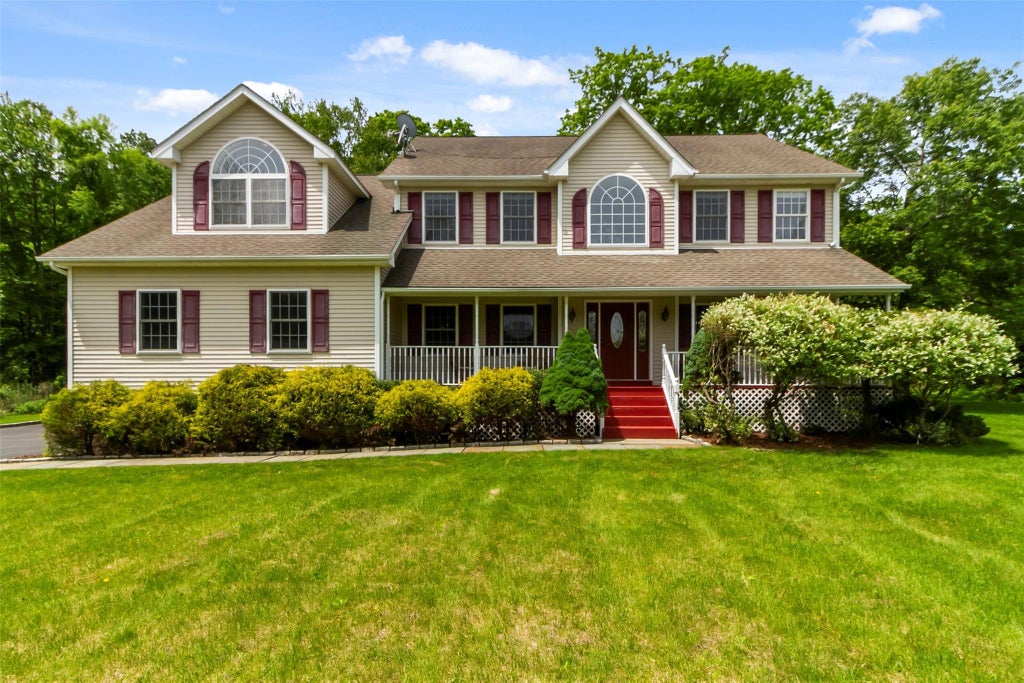 Discover this beautiful Colonial privately set on a cul-de-sac in the Mahopac School District, nestled on a large, level lot — a true must-see! The covered front porch welcomes you into a bright two-story foyer. The main level features a private office, formal living room, granite center island eat-in kitchen with stainless appliances, pantry & breakfast room. Large formal dining room. The spacious family room boasts cathedral ceilings, skylights, a cozy fireplace, and sliding glass door leading to a large deck—perfect for entertaining. Gleaming hardwood floors throughout. A powder room, laundry, and oversized two-car garage complete the first level. Upstairs, the expansive primary suite offers a very large walk-in closet, linen closet, and luxurious full bath with jetted tub, walk-in shower, and double sink granite vanity. Two additional bedrooms — with walk-in closets of their own — share a full hall bath, also with a double sink granite vanity. Also on bedroom level is a spacious den. The full unfinished basement house utilities and provides ample storage, along with a walk-out to the back yard. Central air. Above ground oil tank. This amazing property is convenient to schools, shopping, and several community parks. Just 1 hour to NYC. Taxes do not include STAR Deduction, for those who qualify.