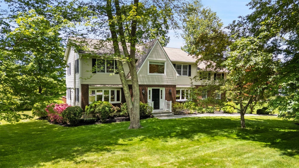 Classic Center Hall Colonial with expansive backyard and amazing sunsets in desirable and conveniently-located Indian Hill neighborhood. Updated eat-in-kitchen with walk-in pantry. Renovated baths. Both living room and kitchen offer access to enlarged deck overlooking a park-like setting with mature trees and plantings, great for everyday living and entertaining family and friends. Large family room features wood-burning fireplace and an abundance of natural light. Primary bedroom has spa-like ensuite bath and walk-in closet. Three other generously-sized bedrooms, a hall bath and a versatile, sun-filled alcove suitable for home office or library complete the second level. Oversized 2-car garage, a full unfinished basement and an attic with pull-down stairs offer ample storage space. Hardwood floors, bay windows, skylights and architectural moldings throughout. Neighborhood enjoys easy access to Fox Valley Park featuring new playground, athletic fields and facilities for tennis and pickleball as well as a hiking trail to local elementary school. Very close to Metro-North Goldens Bridge Train, I-684, award-winning Katonah-Lewisboro schools and local shopping. 10 minutes to charming Katonah Village. High efficiency heating and cooling system, central vacuum, new 80-gallon hot water heater (2024), generator transfer switch, community water tested regularly. Don't miss this opportunity to become part of one of Northern Westchester's finest communities!