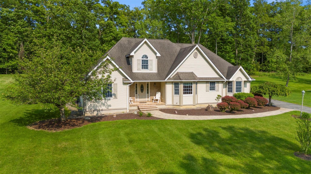 BEAUTIFULLY CRAFTED CUSTOM BUILT RANCH IN WALLKILL SCHOOLS! Nestled on a picturesque 1.1 acre, this home welcomes you with a beautifully manicured lawn, landscaped gardens and a stately brick faced entryway featuring hand-laid sandstone, blending classic charm with natural elegance. This 3 bedroom, 2.5 bath ranch offers the ease of single-level living in a prime location. Set on a spacious lot with thoughtful designs throughout, this home is ideal for both everyday comfort and effortless entertaining. The front entry showcases beautiful woodwork with dual closets as it flows seamlessly into a large living room with cathedral ceilings. The heart of the home is the custom-built kitchen, a chef’s dream with stainless steel appliances, granite counters, double wall ovens, Sub-zero refrigerator, and ample prep space for culinary creativity. The formal dining room is bright and inviting featuring a bay window that fills the space with natural light and a charming built-in hutch and desk. The home’s layout offers optimal privacy with a generous primary suite tucked away on one side, featuring a large bay window, an abundance of closet space including a customized walk-in closet and two additional closets. The en-suite tiled bath features both a walk-in shower and separate tub and a convenient linen closet for added storage. On the opposite end of the home, you’ll find two additional bedrooms, each with spacious closets and a full hall bath with a linen closet. Enjoy the changing seasons in the light-filled three season room, a perfect spot to relax or entertain while enjoying backyard views. This home features hardwood floors throughout with radiant heating and two central air systems, ensuring year-round comfort. A 2-car attached garage adds convenience and storage and leads to a well-equipped laundry room with ample cabinets, an additional sink, large double closets and a convenient half bath. The expansive basement with 8-foot ceilings provides endless potential for finishing-whether as a recreation room, gym, workshop or additional living space. This property delivers the serenity of country living with the convenience of being situated close to schools, shops and parks. It’s centrally located to commuter roads, 75 min to NYC, convenient to Stewart International Airport, Metro North Train, Mohonk Mountain and Minnewaska State Park. Nearby are wineries, including locally owned and operated Magnanini Winery, breweries, cideries and local farm stands.