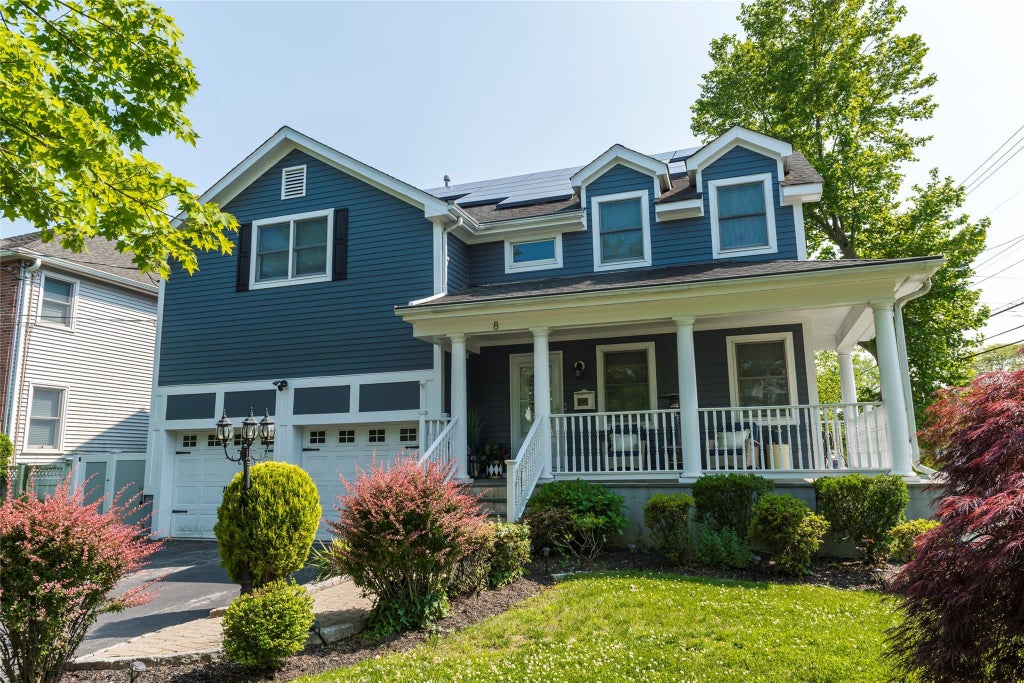 Welcome to 8 Homestead Avenue!! This spectacular colonial, located on a corner lot, in sought-after neighborhood in Scarsdale w/Eastchester Schools, offers a recently renovated & updated 4 bedroom, 3 1/2 bath spacious home, PLUS additional BONUS space in the lower-level, to be used for various purposes. Enter & be greeted by the entry’s bright, spacious, warm & inviting ambiance. This home boasts an open-concept floor plan, perfect for hosting family & friends, with a seamless flow between the kitchen, dining area & living room. Off the entry, step right into this newly renovated kitchen, featuring quartz countertops, tile & customized marble backsplash w/high-grade hardwood cabinetry & new high-end Wolf/Bosch stainless steel appliances, offering an island large enough for 3-4 stools w/beautiful pendant lighting, as well as an eat-in kitchen/dining area. Off the kitchen, you will find an expansive yet cozy living room w/plenty of sunlight, a new functioning gas fireplace, Hunter Douglas blinds & Anderson glass sliding doors that open to the deck, which includes sunset remote-controlled awning, overlooking the lovely yard. This first floor also offers a separate laundry room, powder room, new 2.5” hardwood floors throughout, ample closet space, & recessed LED lighting. The 2nd level offers a grand primary bedroom where you can indulge in the ultimate relaxation in the luxurious en-suite bathroom, complete with a jacuzzi tub, as well as his & her vanities. This primary features a substantial walk-in closet for one & a dedicated closet for the other, ensuring plenty of organized space. Here you also have 3 additional bedrooms, a full bathroom w/ double vanity & access to the pull stairs full attic, great for storage! Some amenities include: Ample closet space, hardwood flooring throughout, 2 new HVAC systems (wifi enabled), central air, central vac, LED lighting throughout, Alarm system, which includes audio/video/moisture sensors/smoke & carbon & listening devices controlled with keypad & app, laundry room on 1st floor, 2-car garage w/new motorized doors & remotes, paid-in-full solar panels (tesla controlled), Hunter Douglas blinds throughout, new fenced-in yard, all new interior doors/hardware, new exterior/interior paint, new electric vehicle charger hookup, irrigation system, gutters have leaf guards & conveniently located to all schools, restaurants, highways, bus service, metro-north railroad, local shopping & parks. Get ready to call this charming home your own!!!