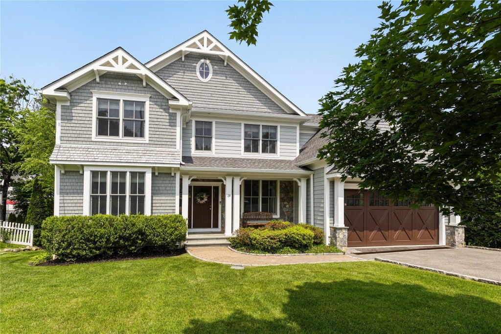 Welcome to 19 Tunstall Road, a better-than-new 2016 Center Hall Colonial in one of Edgewood’s most beloved neighborhoods. A soaring foyer features handcrafted, herringbone hardwood floors w/beautiful inlays and nine-foot ceilings which frame open sight lines through elegant living and dining rooms to the sun-splashed family room, where a gas fireplace sets a warm, inviting tone. The adjoining chef’s kitchen is the true heart of the home and showcases an impressive center island, approx 5' x 8'6" long, with breakfast bar seating. A dream kitchen for entertaining, there is a Wolf six-burner range with oversized oven underneath, two additional wall ovens (one convection), a Sub-Zero refrigerator, Bosch dishwasher, custom white cabinetry and gleaming quartz countertops—all illuminated by oversized Andersen windows that flood the entire main floor with natural light. A custom mudroom connects directly to the attached two-car garage, while smart infrastructure—multi-zone HVAC managed by Nest, CAT-5 wiring, blown-in insulation and a hard-wired alarm system with exterior video cameras—ensures comfort, efficiency and peace of mind. Upstairs, four generous bedrooms and three luxurious baths await. The primary suite impresses with a tray ceiling, an enormous, outfitted walk-in closet and a spa bath featuring a soaking tub, double-quartz vanity, oversized shower. A well-appointed laundry room is conveniently located on this level. The fully finished lower level rivals the main floors, offering a sprawling recreation lounge, built-in study desks customized for creative work, a bright office with full-size window and closet, a stylish full bath and a customized gym. Throughout the home, every closet is professionally outfitted and custom shades and blinds are already in place. Outside, the professionally landscaped property is remarkably private and serene, featuring a level lawn serviced by an automated sprinkler system and an expansive bluestone patio—perfect for summer barbecues, alfresco dining and quiet evenings under mature trees. The covered front porch adds a welcoming vibe and a place to enjoy your morning coffee. A couple of short blocks to Edgewood Elementary; walk to Scarsdale High School; free bus to Scarsdale Middle School. Walk down to Village shops and Metro-North train or take commuter bus. 19 Tunstall Road delivers turnkey luxury, smart technology and effortless living in an idyllic Scarsdale neighborhood!