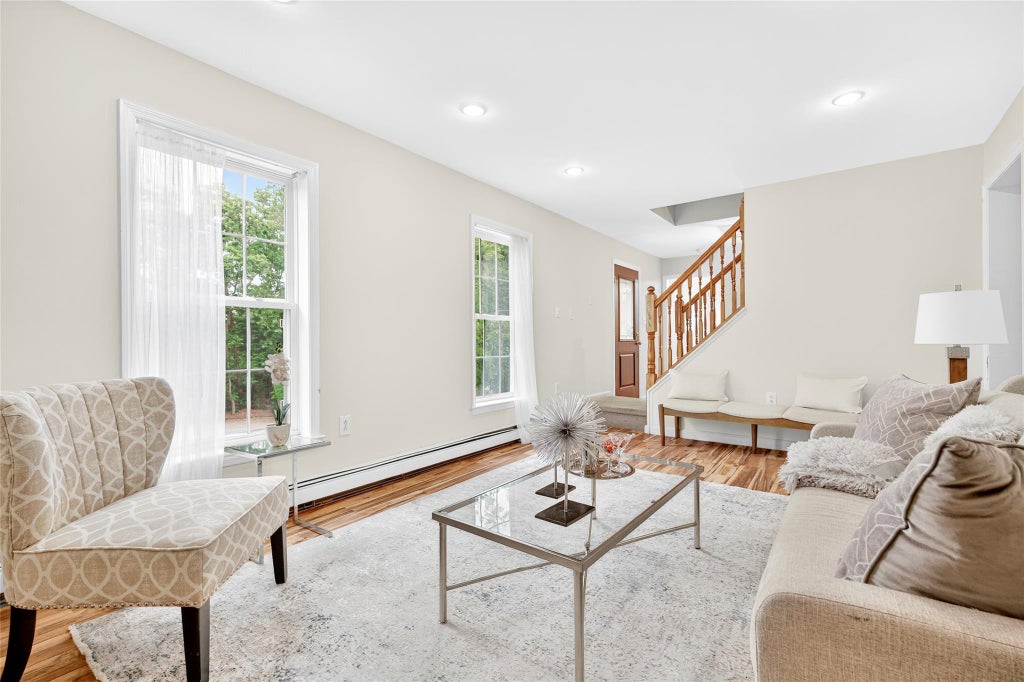 Tucked away at the end of a quiet cul-de-sac, this charming Cape cod is the kind of home that just feels good from the moment you arrive. With 4 bedrooms, and 3 full bathrooms, there’s plenty of room to spread out, grow, and make lasting memories. Step inside through a stylish glass-paneled front door and into a sunlit foyer that sets the tone for the rest of the house. The kitchen—spacious and practical—opens directly onto a patio through sliding doors, making it easy to enjoy weekend BBQs, casual dinners outdoors, or peaceful mornings with coffee and the sound of birdsong. The living and dining rooms are filled with natural light, thanks to oversized windows that frame views of the surrounding greenery. This home offers the added convenience of a first floor bedroom. Upstairs, the oversized primary suite boasts three exposures (south, east, and west), a generous walk-in closet, and enough space to turn into your personal sanctuary. The lower level offers a substantial basement with laundry and features high ceilings and a welcoming layout—an ideal spot for movie nights, hobbies, or just hanging out with loved ones. One hour from NYC, this home is ideally situated to nearby river front parks and Crawbuckie Nature Preserve. A home that brings together comfort, light, and natural beauty—don’t miss your chance to make it yours.