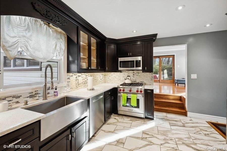 Great Rental in New Rochelle's North End!!! Deceiving from the outside, this Bonnie Crest split is very spacious on the inside. Built in 1965 and totally renovated, the home offers multiple living spaces, boasting all new Anderson windows, a Wolf range, Nest thermostat and an induction water heater (2021). There are 3 bedrooms and 2 bathrooms on the 2nd and 3rd level including the Primary ensuite as well as two half baths on the main level. The main level also consists of a bright Living room w/ electric fireplace, Formal Dining room, Eat-in Kitchen w/built-in banquet, Playroom, Office/Aupair suite w/separate entrance and Family room with sliders out to the patio. On the lower lever, you'll find all updated utilities, Laundry room and door to attached two-car garage. Private .36 acres perched above the street. Zoned for William B Ward Elementary. Short walk to schools and worship. Easy commute to NYC on Metro North. Additional Information: ParkingFeatures:2 Car Attached