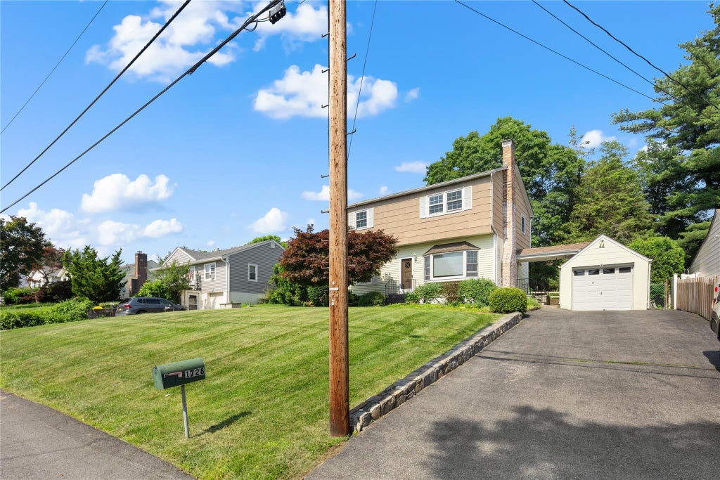 Welcome to this well-maintained home nestled in the heart of Yorktown Heights! This charming residence features a spacious eat-in kitchen, full bathroom, a formal dining room highlighted by beautiful wood beams, and a generous living room with a cozy fireplace and bay window, perfect for gathering with loved ones. Just off the main living space is a versatile bonus area—ideal for a home office, den, or playroom. Upstairs offers four comfortable bedrooms and a full bathroom, providing plenty of room for family and guests. The finished basement includes a wood-burning stove, creating a warm and inviting space for relaxing or entertaining year-round. Located just minutes from major highways, shopping centers, and local restaurants, this home effortlessly combines comfort, character, and convenience.