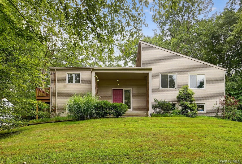 Wonderful Contemporary Raised Ranch located on a quiet cul-de-sac in Somers! Discover this beautiful home offering an open and airy floor plan. The oversized kitchen features granite countertops, stainless steel appliances and glass backsplash, large center island, and cabinetry extending to the ceiling, perfect for style and storage. The living room and dining area boasts vaulted ceilings with exposed wood beams, a distinctive, stylish Piazzetta pellet stove adding warmth to the space. Large windows and two sliding glass doors flood the space with natural light. Step outside to the large deck, landscaped yard offers privacy and charm marked with stonework. The primary suite offers a spacious retreat with a full bath and walk-in closet. Two additional bedrooms, a hall bathroom featuring dual sinks, classic basket weave tile flooring, timeless white subway tile walls, and a luxurious rainfall shower head. Hardwood floors flow throughout the main floor. The lower level features a spacious family room, sit by the cozy, wood burning brick fireplace, perfect for relaxing evenings at home, 4th bedroom and half bath with stone floor, laundry and two car garage completes the lower level. Don't miss the opportunity to own this stunning home in a sought after Somers location! AO