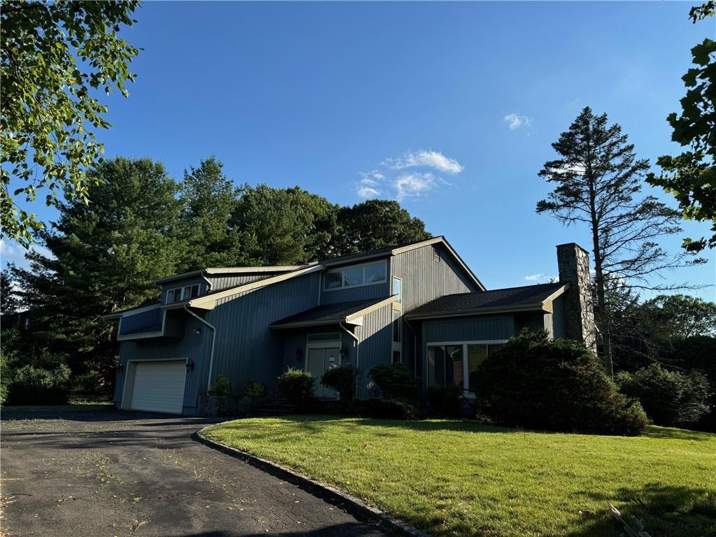 Spacious contemporary on a corner cul de sac lot with a circular drive. Its open floor plan with spacious rooms and multiple skylights make it a very bright home. Living room with fireplace and vaulted ceiling, formal dining room with sliders out to a rear deck, and an eat in kitchen with a side porch is adjacent to the family room with another fireplace. Laundry room and half bath complete the main level. 4 bedrooms and 3 baths upstairs, a 2 car garage, and a basement with potential. Diamond in the rough as the house suffered freeze damage. Additional Information: ParkingFeatures:2 Car Attached
