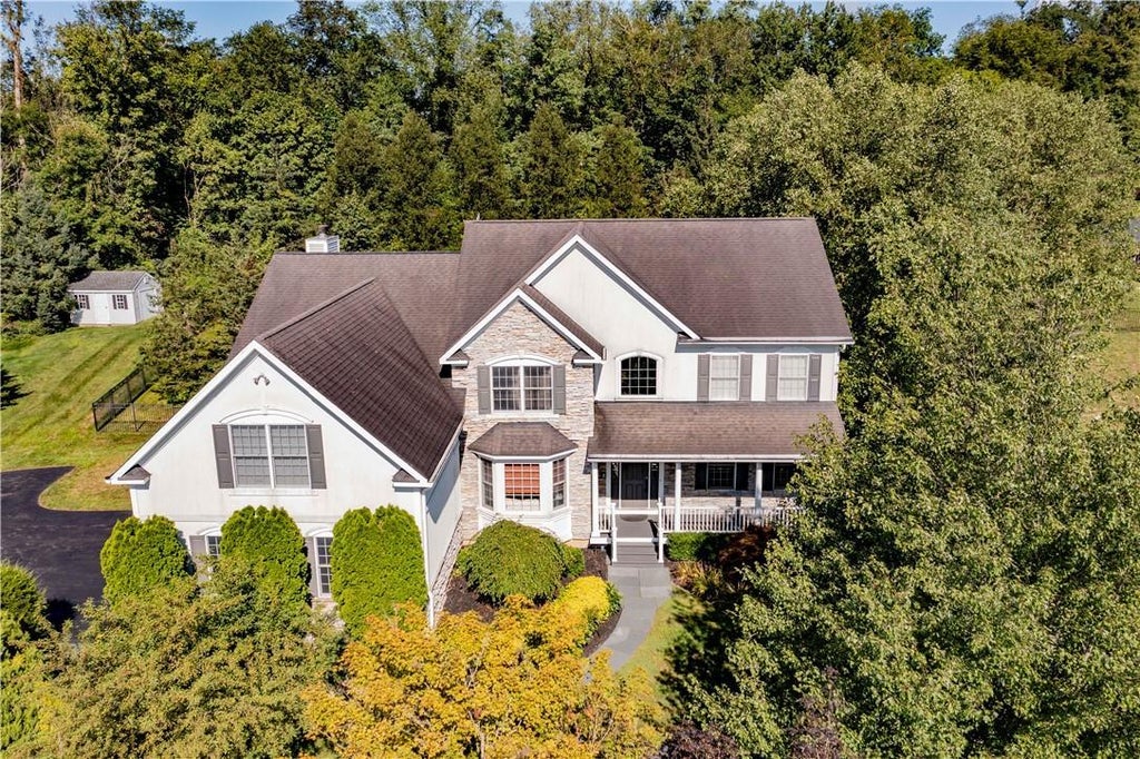 Welcome to your dream home in The Legends! This spectacular residence boasts 4 generously sized bedrooms and 3.5 bathrooms, seamlessly blending elegance and comfort. As you enter, you're greeted by a grand 2-story foyer that sets the tone for the rest of the home. The first floor features stunning hardwood floors throughout and an open, airy layout perfect for both everyday living and entertaining. The main level includes inviting formal living and dining rooms, complemented by a first-floor office with French doors, ideal for working from home. The gourmet kitchen is a chef’s delight, equipped with hickory cabinets, granite countertops, and a spacious pantry. The kitchen opens into a breathtaking family room with a floor-to-ceiling stone fireplace and French doors leading to a sunlit 13 x 15 sunroom. Upstairs, the luxurious primary suite offers a serene retreat with a spa-like bathroom, dual closets, and a cozy TV room with a private balcony overlooking the lush backyard. The second floor also features a princess suite and two additional bedrooms that share a well-appointed bathroom. Step outside to discover your own personal oasis. The backyard is designed for ultimate relaxation and entertainment, featuring gunite inground pool, a hot tub, cascading waterfalls, and a gas fire pit, all surrounded by a beautifully crafted stone patio. The property also includes a charming full front porch, a 3-car garage with a spacious turnaround, and is enhanced by elegant stone walls and mature trees. Conveniently located near shopping and less than a mile from the Taconic State Parkway, this home offers both luxury and convenience. Don’t miss the opportunity to make this extraordinary house your new home. Additional Information: ParkingFeatures:3 Car Attached