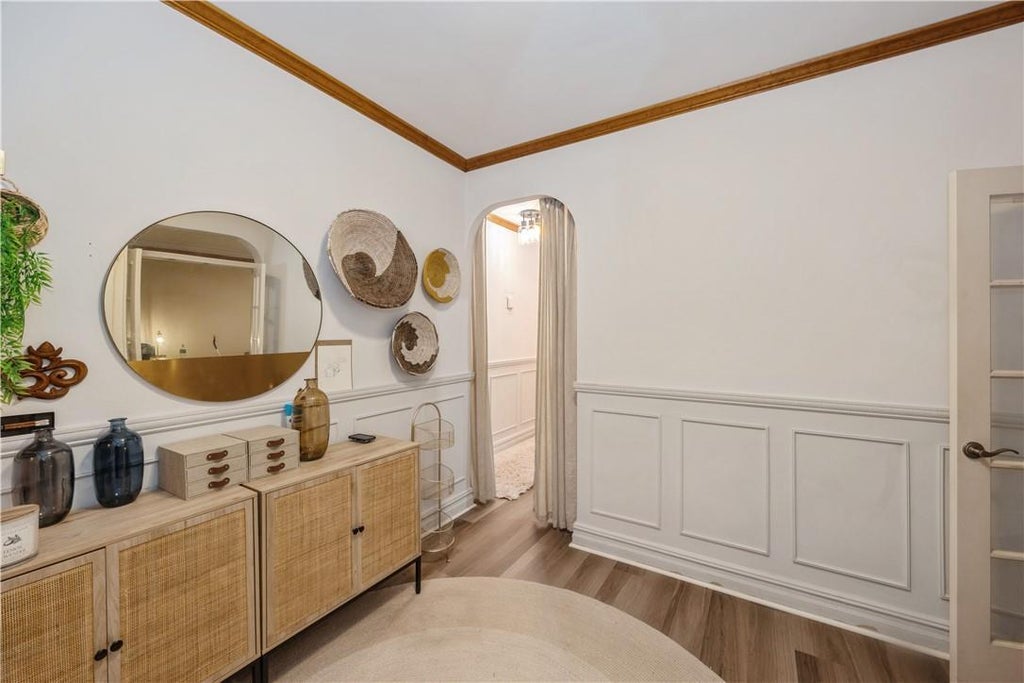 Step into this charming one-bedroom unit. The expansive living space is bathed in natural light, accentuated by high ceilings and ample storage throughout. Upon entry, you’re greeted by a spacious foyer, featuring a stunning built-in closet. The unit boasts new flooring, crown molding, and wainscoting. The generous living room, with its tranquil views of the building's rear, offers plenty of space for both relaxation and dining—perfect for entertaining guests. The kitchen is equipped with stainless steel appliances, granite countertops, and timeless wooden cabinetry. There's even room for a cozy breakfast nook. large Bedroom big enough to comfortably fit a king-sized bed, overlooking the scenic back of the building. Located in the heart of downtown New Rochelle, this unit offers the best of city living. Enjoy a variety of shops, restaurants, and entertainment options just steps away. Plus, with the New Rochelle Metro-North station and I-95 highway nearby, commuting is a breeze.