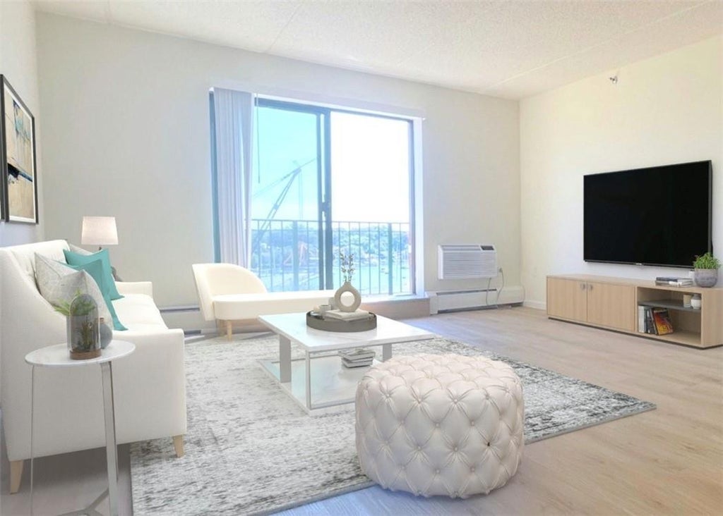 Located in the heart of Mamaroneck's Vibrant Village at the desirable Regatta Condominium, this meticulously renovated and spacious WATERFRONT apartment is on the top floor, affording VIEWS OF HARBOR ISLAND out to LONG ISLAND SOUND from every window. Easy Living awaits as you enter the elevator from the indoor parking garage space designated to this unit, one of few units that have LAUNDRY IN THE UNIT, as well as a laundry room on each floor. This renovated 2 Bedroom/2 bath unit boasts 1150 square feet with heat/hot water and indoor garage parking space included. Get ready to enjoy all this Waterfront Community has to offer including a Charming Downtown, Fabulous Library, Restaurants, Shops, Emelin Theater, Harbor Island Park and Beach, Marine Center, a Luxury Movie Theater, Boating, Kayaking and more! Vacant and available for immediate occupancy. Management charges $600 move-in fee, $250 application fee, and a refundable $500 move-in deposit.