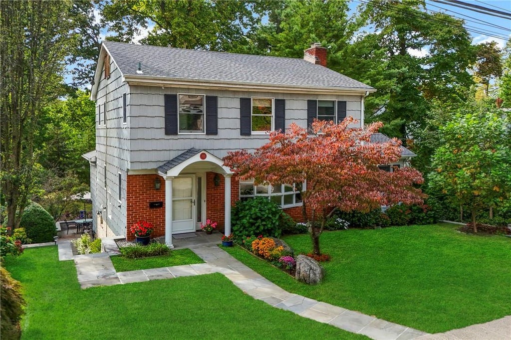 Discover this classic Colonial masterpiece, built in 1965 and offered for the first time by its original owners. Nestled in the sought-after Larchmont Woods neighborhood, this brick and shingle residence blends timeless charm with modern comfort, just moments from the vibrant heart of Larchmont Village. Spanning over 2,000 square feet, this home boasts a thoughtful layout that invites natural light and a warm atmosphere. As you enter the foyer, adorned with elegant slate tiles, you'll appreciate the convenient hallway closet. The formal living room features a cozy wood-burning fireplace, exquisite crown molding, and a lovely bay window that frames picturesque views of the surrounding area. Adjacent to the living room is a well-appointed office. The formal dining room, enhanced by crown molding and a classic chair rail, leads to an oversized eat-in kitchen. This inviting space includes an island with a wet bar, floor-to-ceiling windows, and cathedral ceilings that provide lovely views of the expansive .18-acre level yard. This versatile area can be used for dining or as a family room, making it ideal for gatherings. Conveniently located off the kitchen, a laundry room provides ample cabinet storage, complemented by a powder room featuring a pedestal sink. On the second floor, the primary bedroom includes two spacious closets and a private full bathroom with a stand-up shower. Three additional bedrooms, each with generous closet space, share a full hallway bathroom with a bathtub and a linen closet. A pull-down attic offers additional storage options. The finished lower level adds an impressive 619 square feet (not included in the total square footage), making it perfect for a family room, playroom, or home gym. With three closets and built-in shelving, this space is both functional and versatile. Sliding doors lead to an oversized bluestone patio, ideal for entertaining or summer BBQs, all overlooking the expansive yard that invites outdoor fun. Additional features include an attached one-car garage with storage and utility space, along with a long driveway for ample parking. This move-in-ready home offers an unbeatable lifestyle, just a short walk from downtown Larchmont, the Metro-North train station, and a variety of shops and dining options. Enjoy the best of both worlds—tranquility at home and easy access to urban amenities. Don’t miss your chance to own this incredible property—it's a rare opportunity that won’t last long! Additional Information: Amenities:Pedestal Sink,Stall Shower,Storage,ParkingFeatures:1 Car Attached