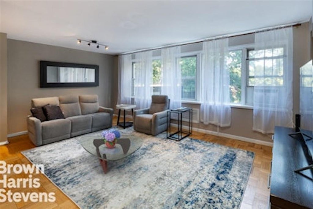 This spacious, renovated 3-bedroom, 2-bathroom co-op at Briar Oaks is meticulously maintained. Situated on a hill above W. 246th St, the full-service building features an oversized living and dining area with abundant natural light. The galley kitchen includes stainless steel appliances, stone countertops, wood cabinets, and a tiled backsplash. Hardwood parquet flooring extends throughout. The primary bedroom has three windows, a walk-in closet, and an updated bathroom with a glass-enclosed shower and floor-to-ceiling tiles. The two additional bedrooms each have two windows and are tastefully renovated. The second bathroom is fully tiled and includes a pedestal sink. Maintenance covers electricity, gas, and basic cable. The apartment features seven closets for ample storage. The building offers a modern lobby, updated elevators, and a new roof. Amenities include a 24-hour doorman, laundry room, bicycle storage, indoor and outdoor parking, a live-in superintendent, a new playground, community room, remodeled fitness center, basketball court, and dog park. Pets are welcome (one dog per apartment). Located in Central Riverdale, the building is close to shopping on Johnson and Riverdale Avenues, offering coffee shops, restaurants, banks, pharmacies, and supermarkets. Local buses to the #1 train and express buses to Manhattan are nearby. A Metro-North shuttle provides a quick 25-minute ride to Grand Central. Wave Hill Park is also close by, providing a beautiful retreat. Riverdale, the jewel of the Bronx, awaits. Assessment in place.