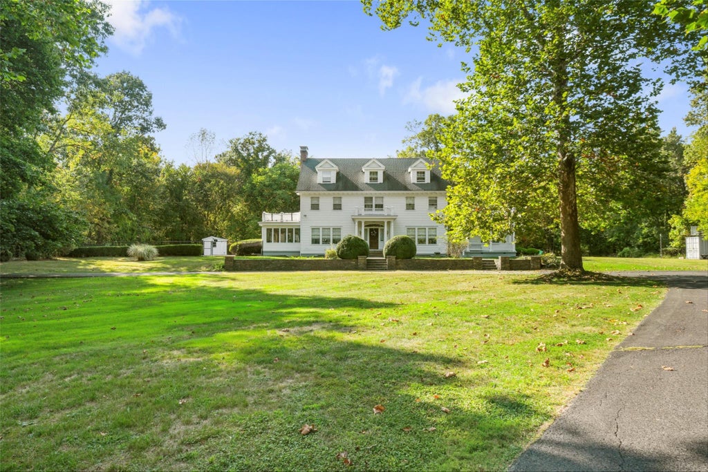 The first floor greets you with a dramatic grand entryway leading to a formal dining room, handsome library, expansive formal living room, sun room, and family room with a fireplace — all anchored by a spacious eat-in kitchen ready for gatherings large and small.
